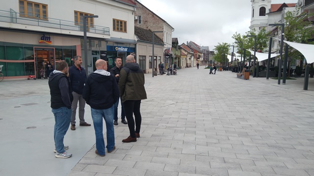 Na središnjem gradskom trgu zatekli smo gradonačelnika Matka Šutala sa suradnicima u obilasku središta grada, koji se kasnije nastavio po gradilištima u gradu i okolnim naseljima, pa je to bila prigoda za kraći razgovor o dinamici odvijanja radova.