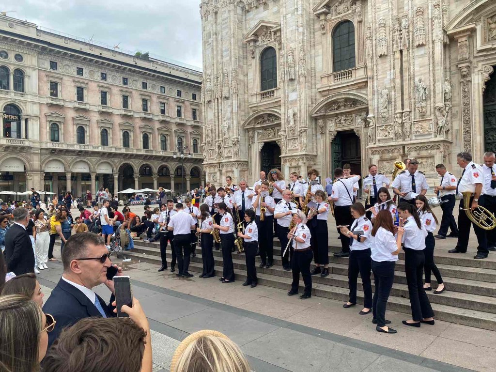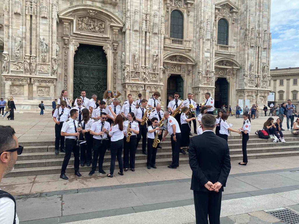 Samoj centralnoj svečanosti prethodio je kratki nastup članova valpovačkog orkestra na glavnom trgu u Milanu pred znamenitom milanskom katedralom. Pred nekoliko tisuća ljudi Valpovčani su, uz prethodnu dozvolu crkvenih velikodostojnika, odsvirali koračnicu “Slavonac“ s nama poznatom temom „Tekla voda Karašica“, „ Zdravo Djevo kraljice Hrvata“ i svjetski poznatu skladbu „ Ave Maria“.