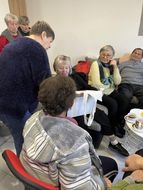 Voditeljica je zajedno s korisnicama pripremila božićne kolače za domjenak. Cijela prostorija je bila lijepo ukrašena u božićnom duhu, a mogle su se čuti i blagdanske pjesme. Tijekom domjenka podijelile su se torbe i šalovi koje su korisnici sami izrađivali te je na kraju svaki korisnik dobio tanjur ovih ukusnih kolača.