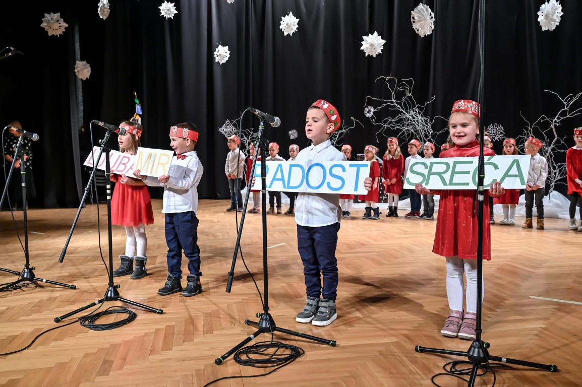 Uz pomoć svojih odgojiteljica Petre Brezovac, Jelene Vinković, Ivane Svrtan, Nikoline Vuksanić, Marine Blažević, Stele Vunderlih, Marine Krišković, Ivane Lešnjaković, Božice Špoljarić, Mirjane Babić, Brigite Kozari, Ivane Vidinović, Nade Babok i Barbare Perak dali su sve od sebe i oduševili gledalište. Radost sudjelovanja u blagdanskom veselju ocrtavala se u osmjesima oduševljenja na licima njihovih najbližih koji nisu štedjeli dlanove pljeskajući u znak podrške. Kao uspomena na sinoćnju razdraganost ostat će nebrojene fotografije.