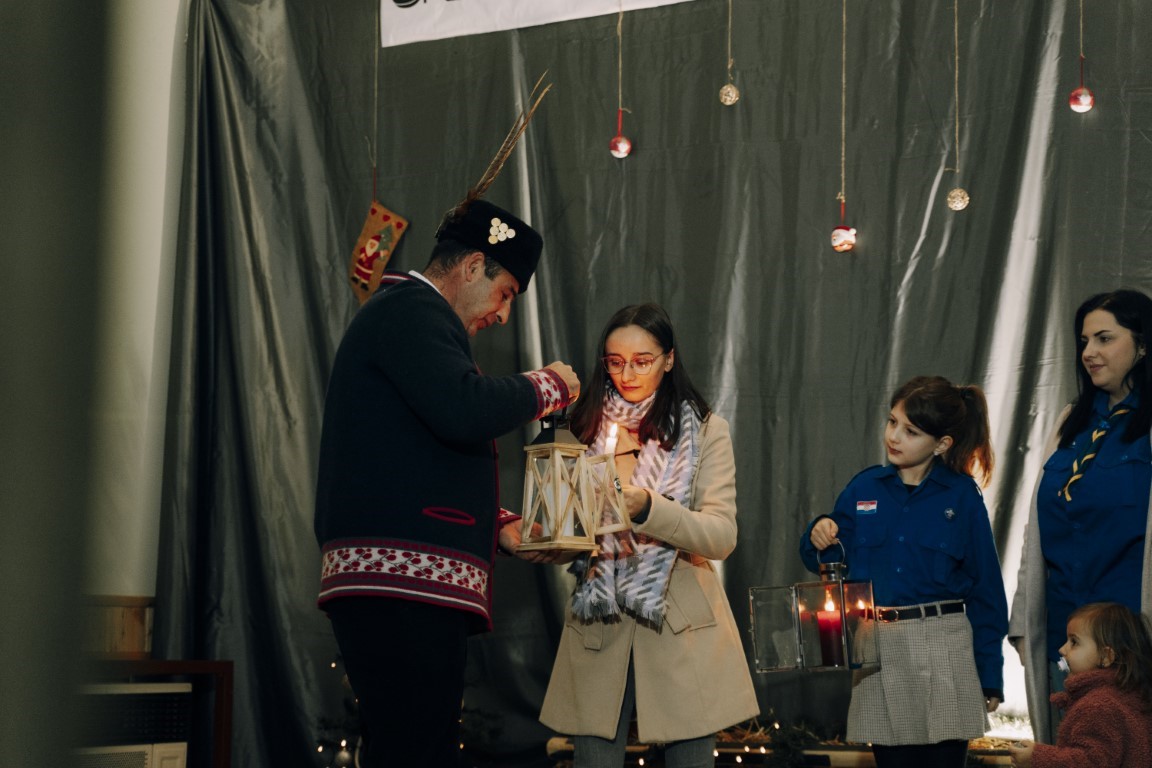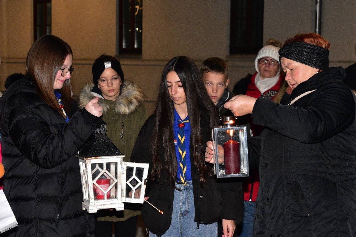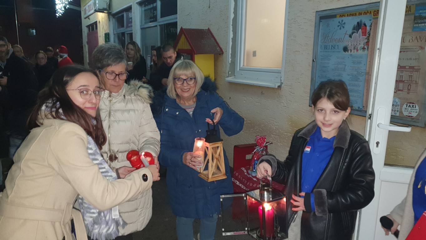 BELIŠĆE Nakon paljenja treće svijeće na adventskom vijencu ispred Palače Gutmann u subotu, 16. prosinca, u Belišće je i ovih blagdana stiglo Betlehemsko svjetlo.