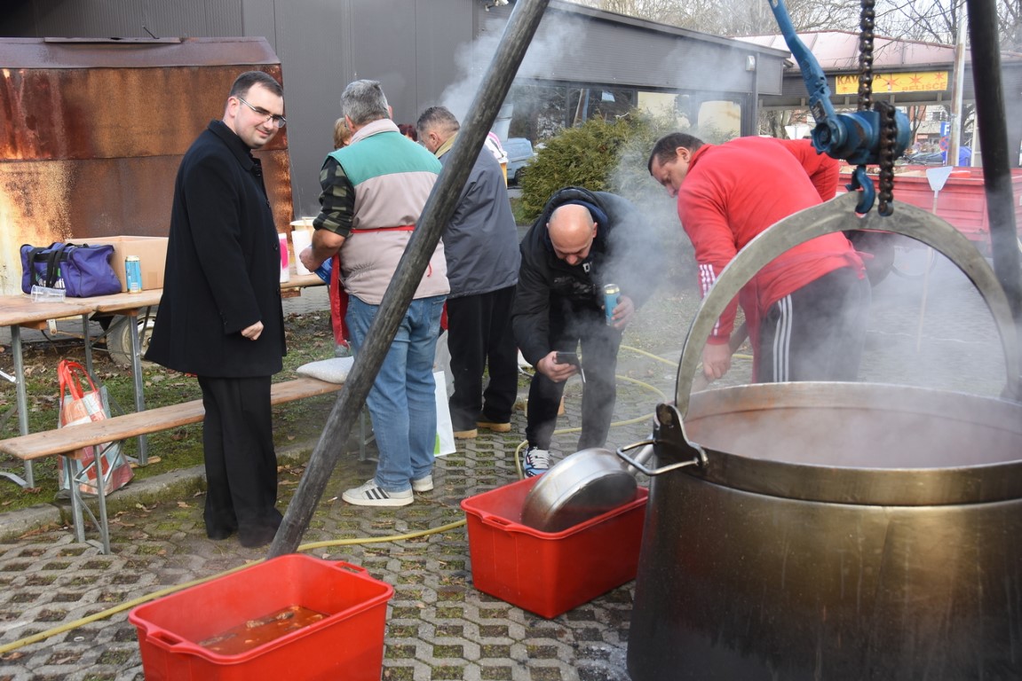 BELIŠĆE Članovi udruge Kotličari i ove su godine za Badnjak kuhali fiš za svoje sugrađane uz pomoć grada Belišća i Turističke zajednice grada Belišća.