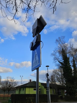 Ugradnjom prometne signalizacije sa solarnom LED bljeskalicom poboljšala se sigurnost u prometu na prometnoj glavnoj cesti slabije osvijetljenosti. Navedena signalizacija funkcionira tako da u nultom stanju (bez najave pješaka) radi na 40 % intenziteta, a kada se pješak približi pješačkom prijelazu rasvjeta i znakovi se pojačavaju na 100 % intenziteta te se uključuju treptači.