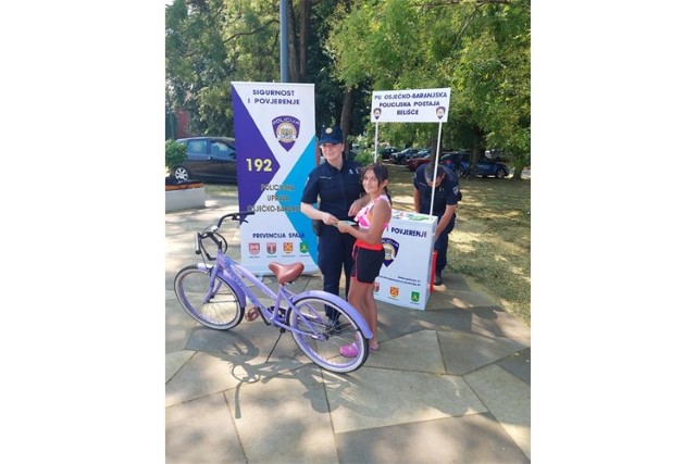Tom prilikom su ispred gradskog bazena u Belišću provodeći projekte „Zajedno više možemo“, „Sigurnost u cestovnom prometu“ i „Biciklirajmo biciklističkom“, dijelili promotivne materijale, odnosno svjetla za bicikle i reflektirajuće prsluke vozačima bicikala koji su zaustavljeni, kao i promotivne letke i privjeske za ključeve.
