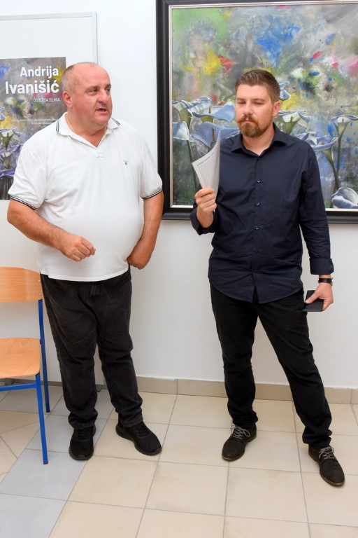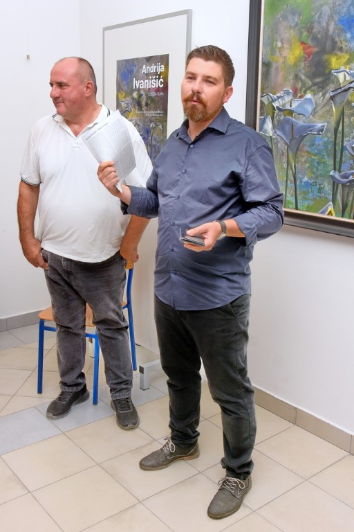 Odmah na samom početku službenog dijela skupa nazočnima se obratio općinski načelnik Srećko Vuković, koji je uz pozdravne riječi govorio o inicijativi i motivima organiziranja Ivanišićeve izložbe, a voditeljica programa Ivana Marincel pročitala je osvrt iz lijepo grafički oblikovanog kataloga autora akademskog slikara Dinka Županovića. Prilikom svog obraćanja slikar Andrija Ivanišić posebno se zahvalio načelniku Vukoviću za veliki trud uložen u pripremu i realizaciju njegove izložbe u prostoru Galerije Antun Ullrich.