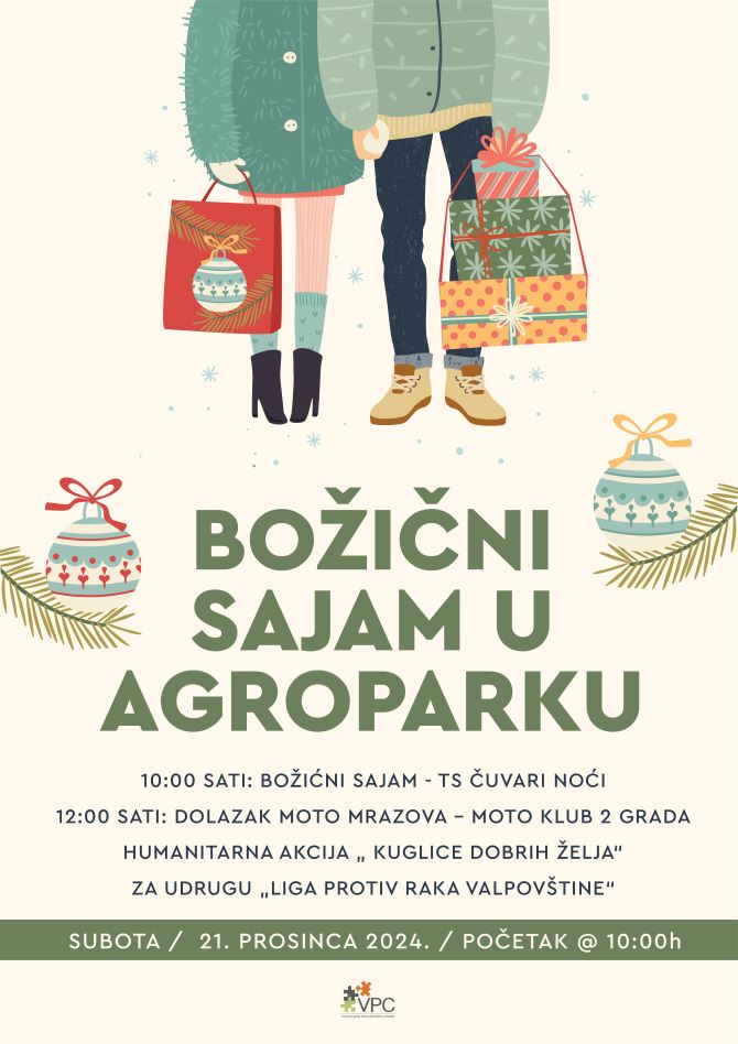 VALPOVO U sklopu manifestacije „Advent u Valpovu 2024.“ Valpovački poduzetnički centar u suradnji sa Gradom Valpovom i Turističkom zajednicom organizira Božićni sajam koji će se održati u subotu, 21. prosinca u Agroparku.