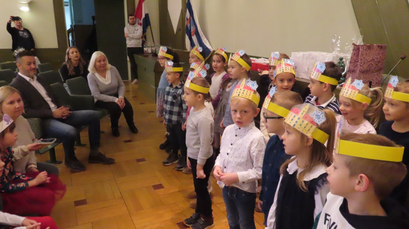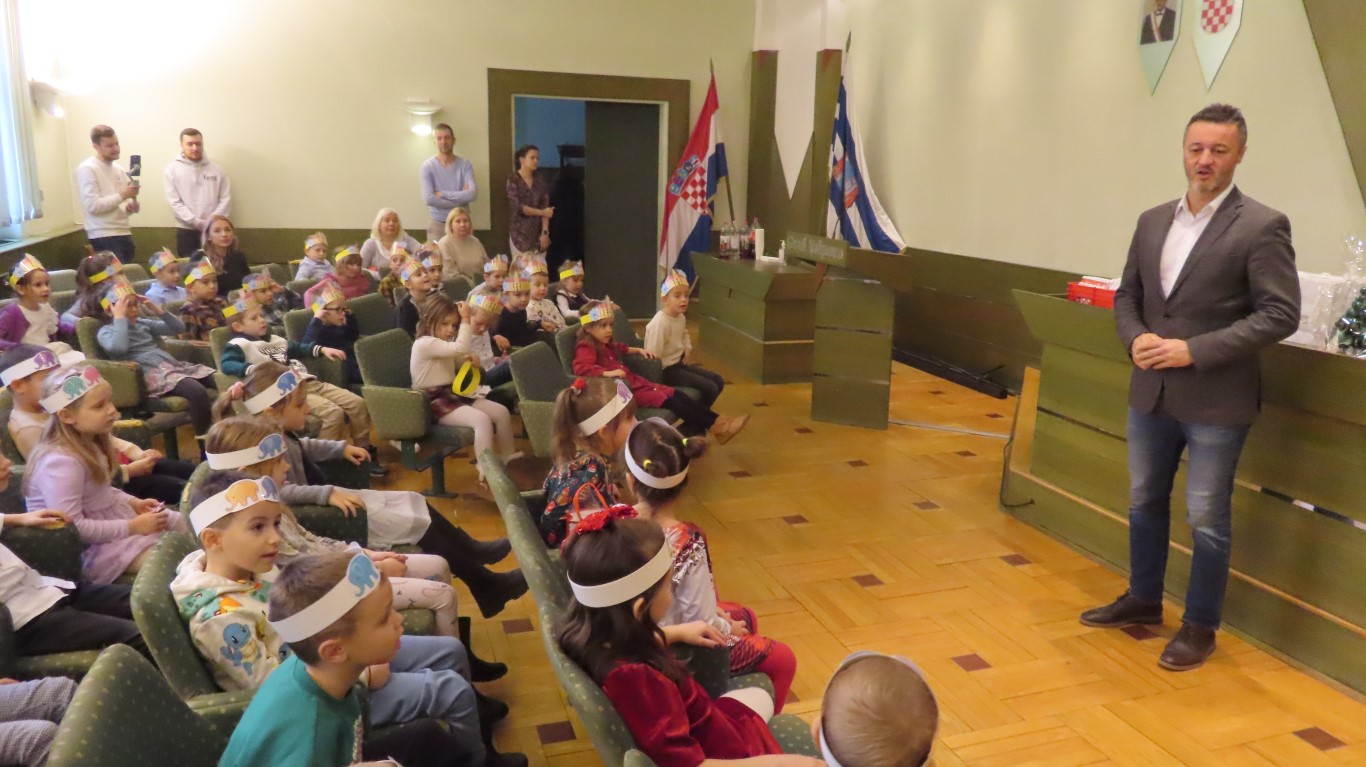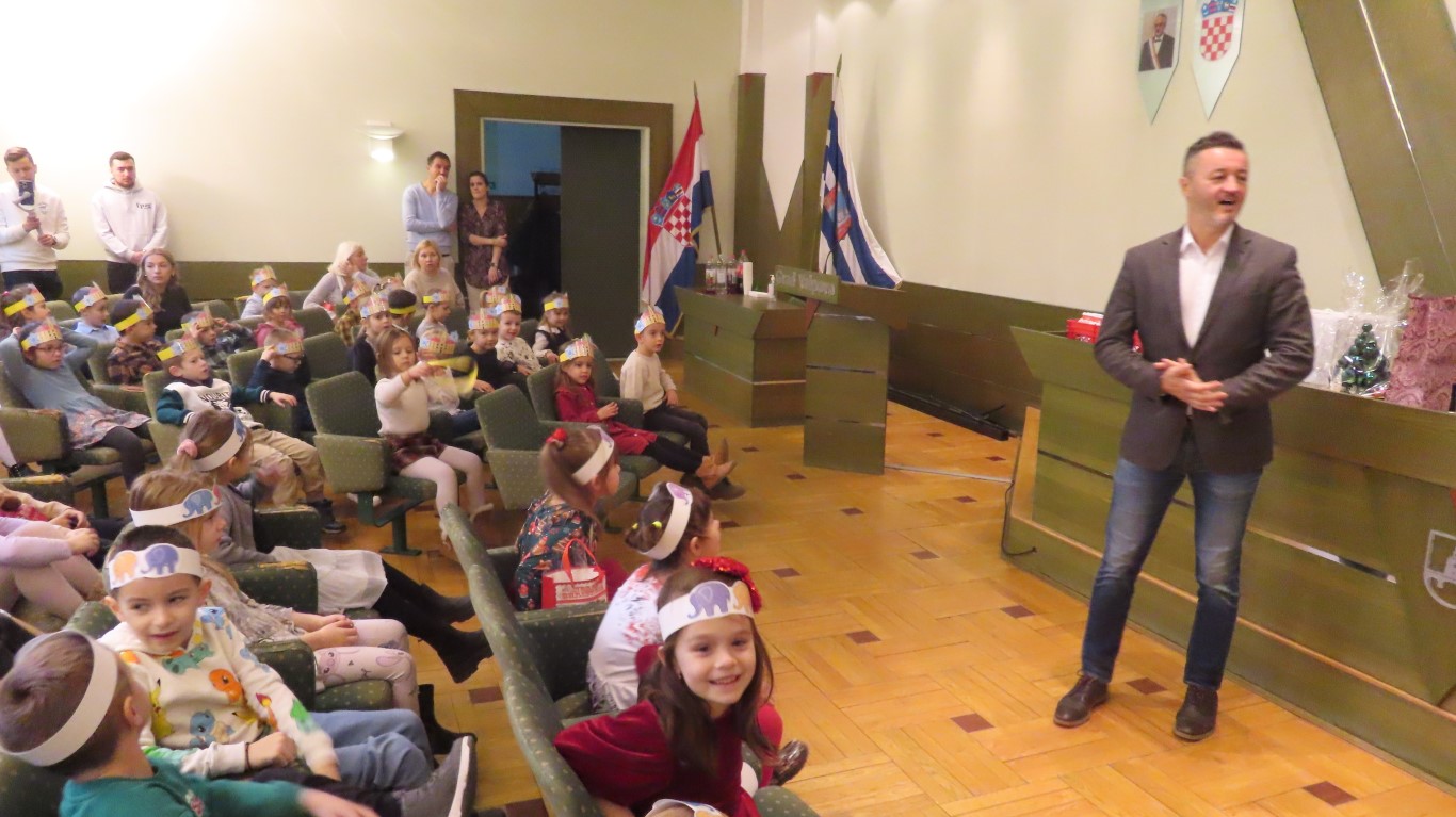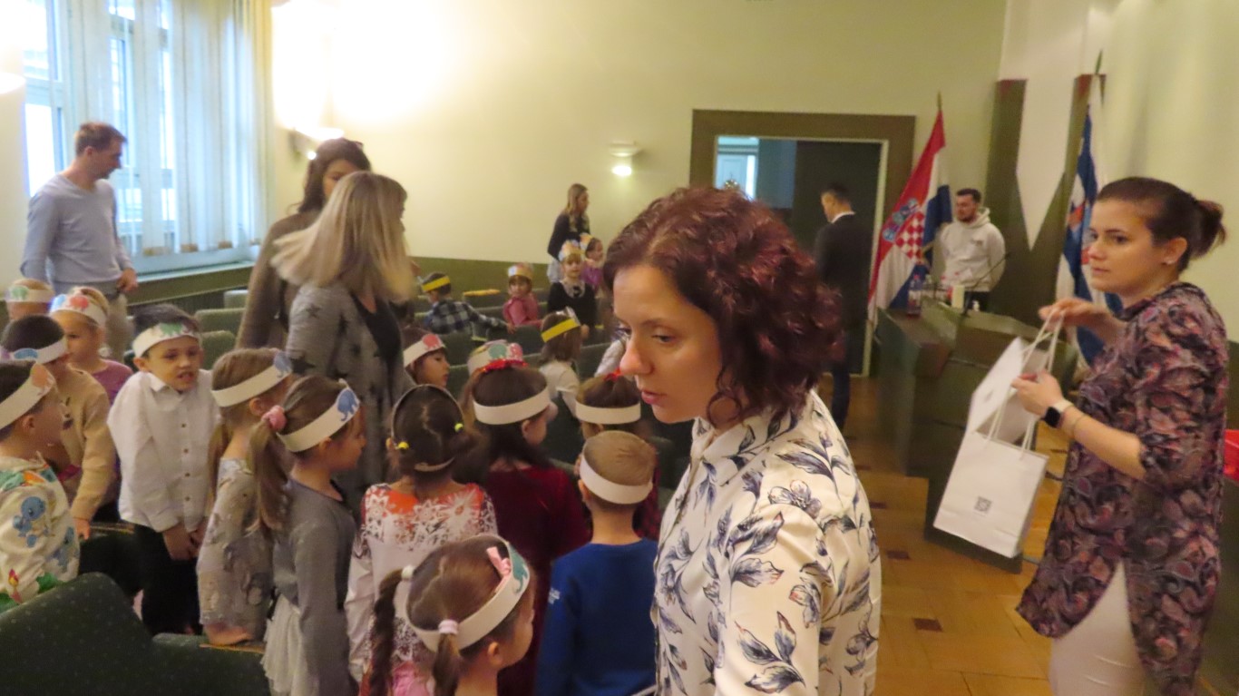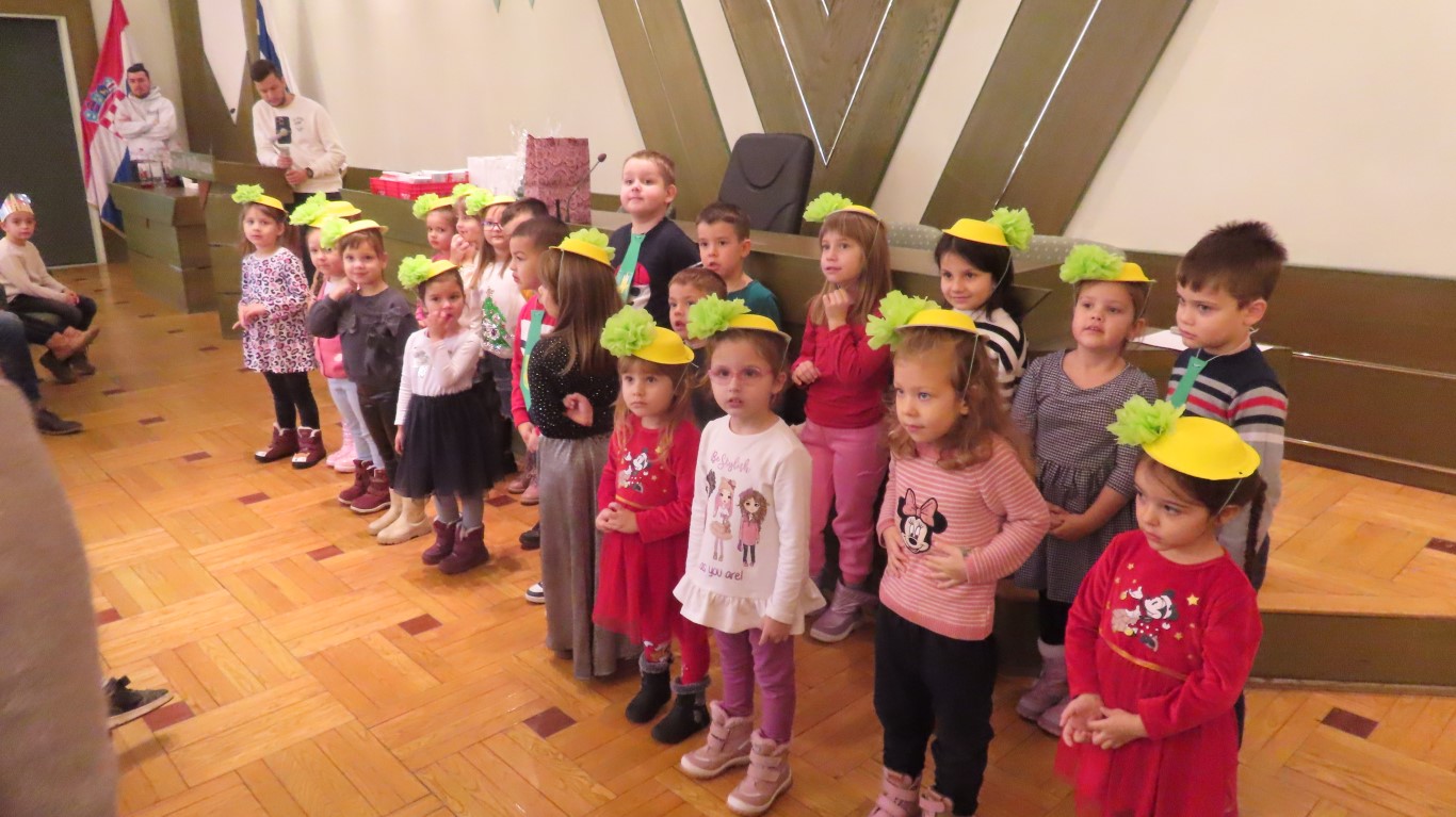 Najmlađi sugrađani, polaznici dječjih vrtića Maza i Moj Bambi u pratnji ravnatelja vrtića i svojih odgajateljica ispunili su veliku vijećnicu razdraganim pjesmicama, recitacijama, smijehom i veseljem.