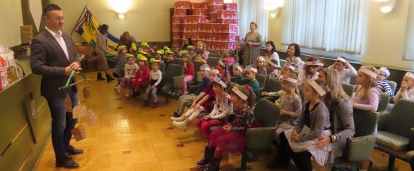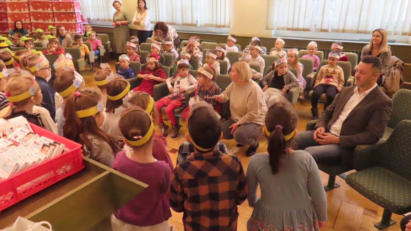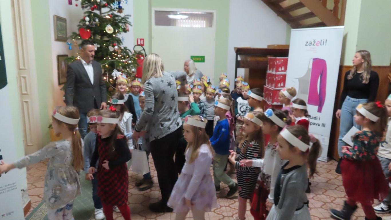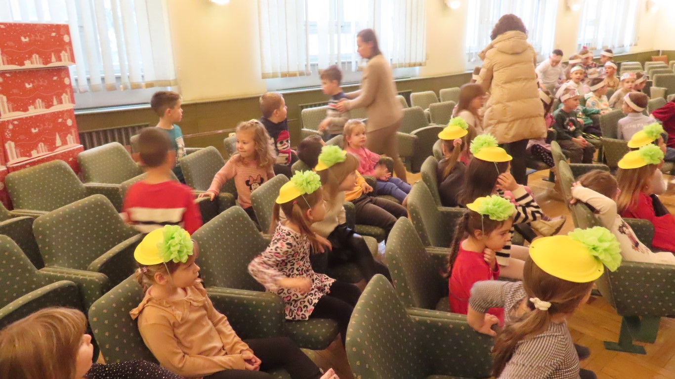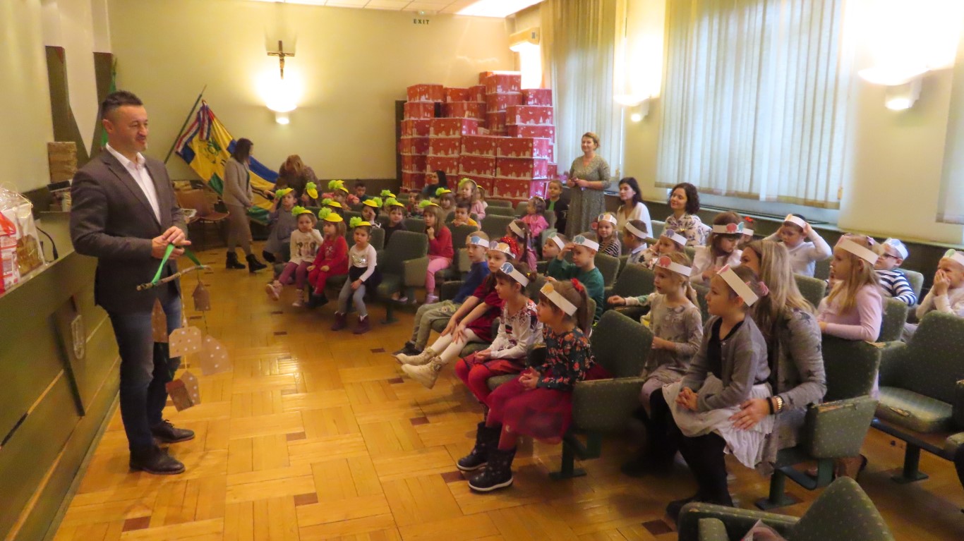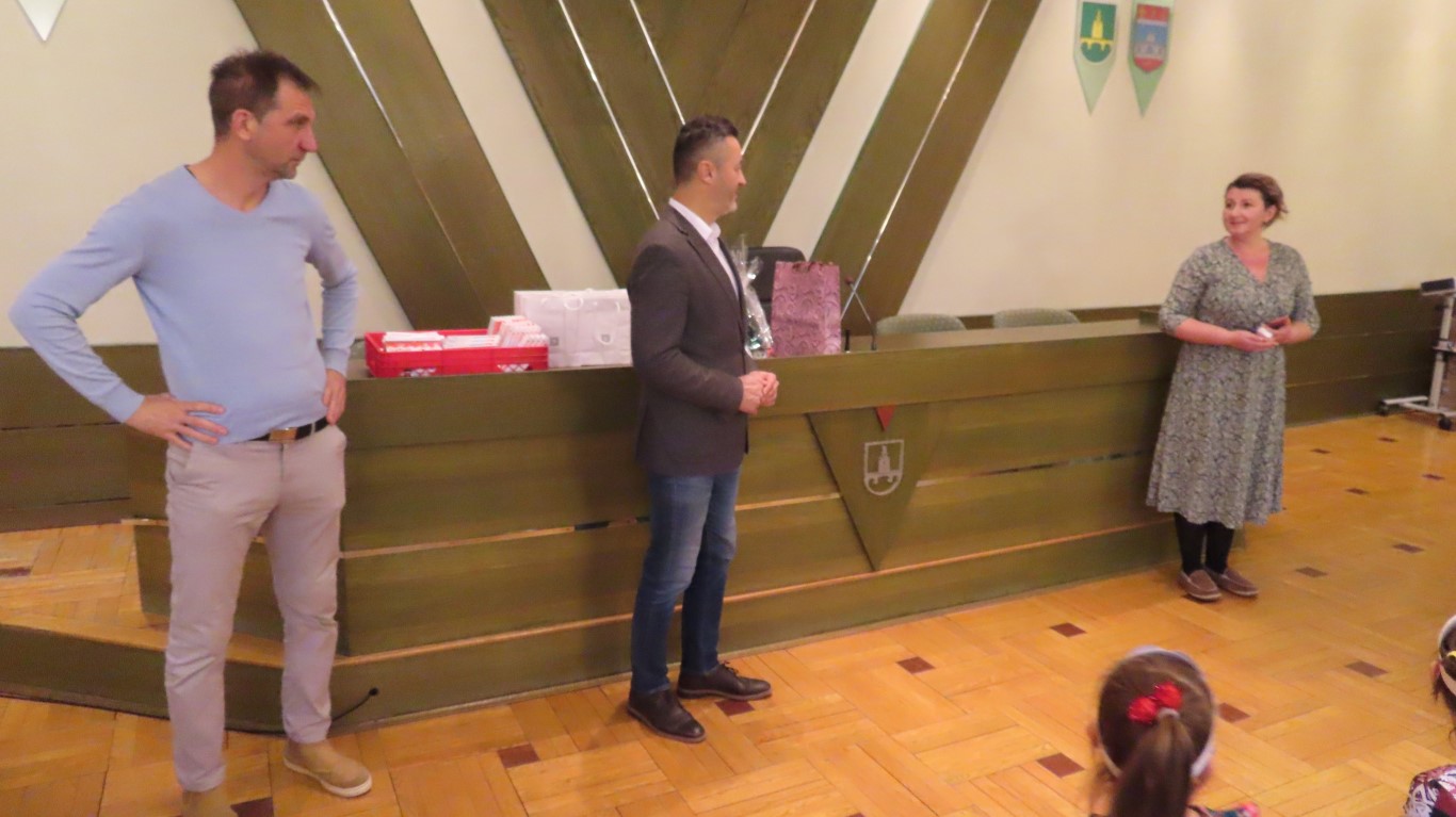 Najmlađi sugrađani, polaznici dječjih vrtića Maza i Moj Bambi u pratnji ravnatelja vrtića i svojih odgajateljica ispunili su veliku vijećnicu razdraganim pjesmicama, recitacijama, smijehom i veseljem.