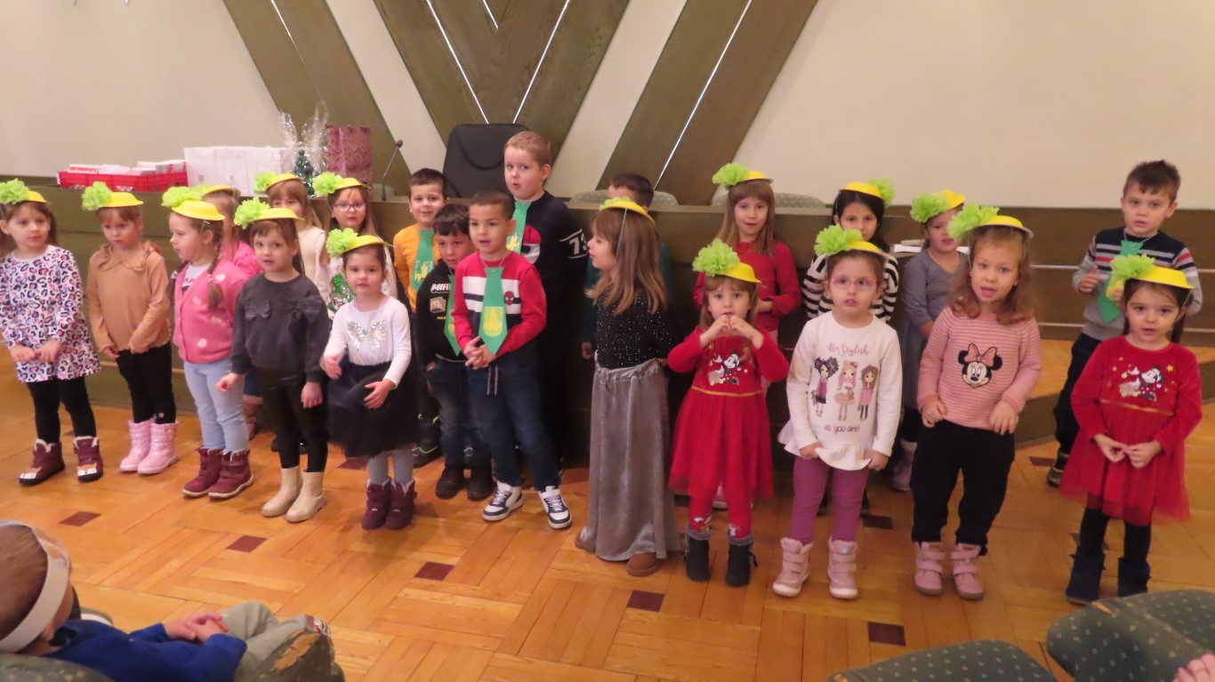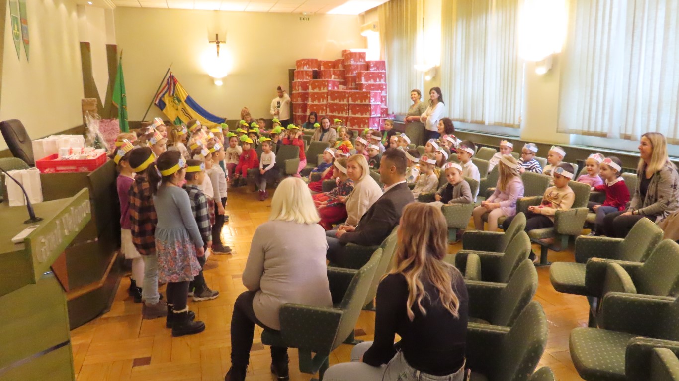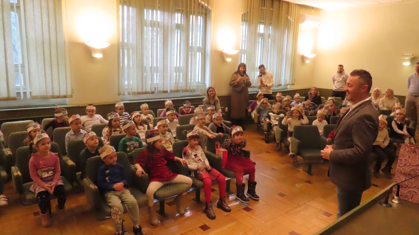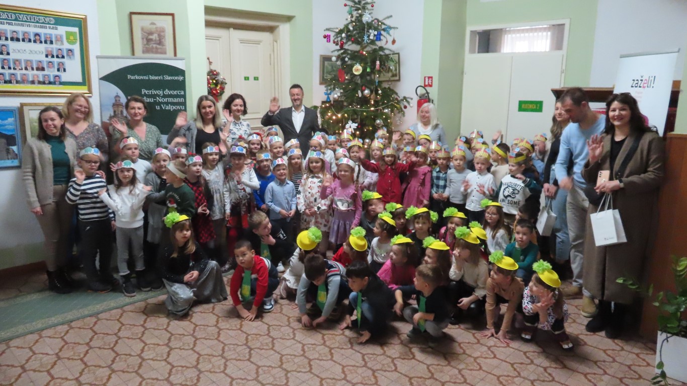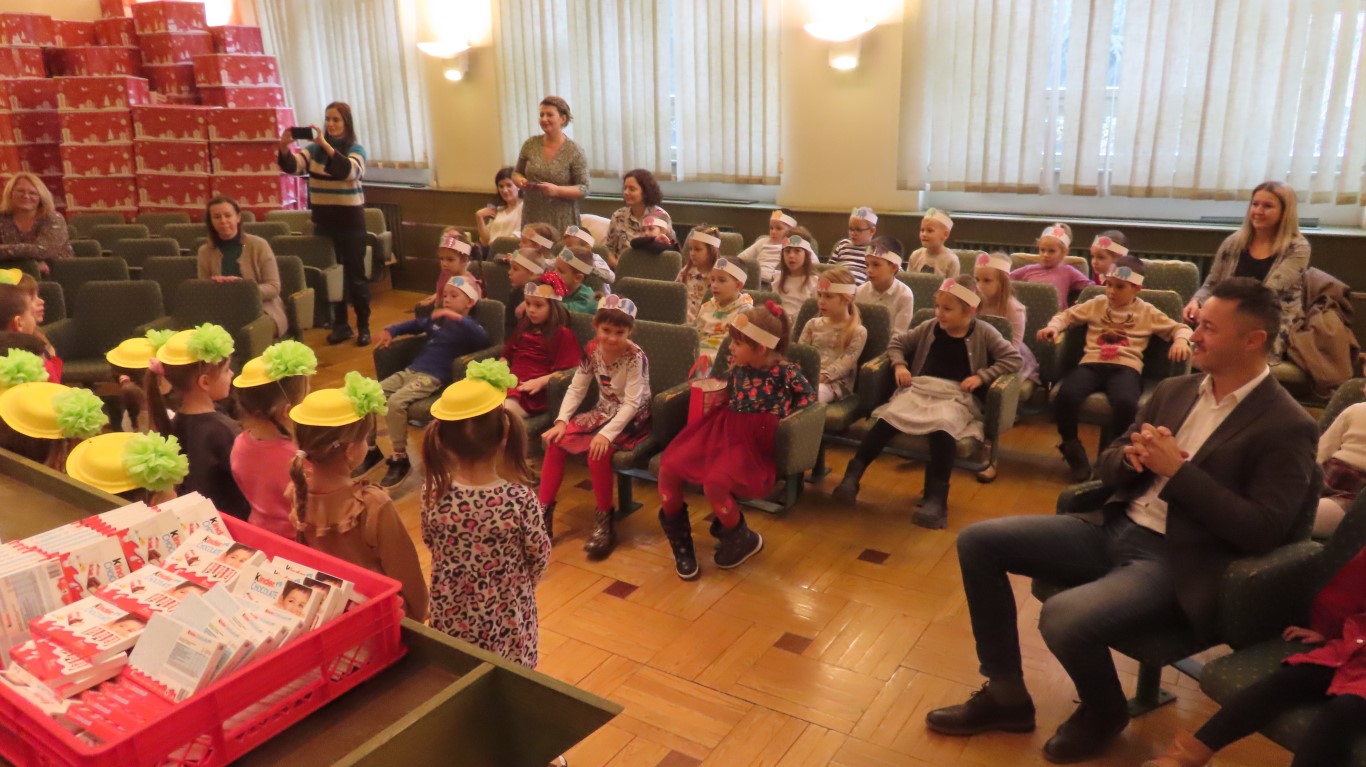 Najmlađi sugrađani, polaznici dječjih vrtića Maza i Moj Bambi u pratnji ravnatelja vrtića i svojih odgajateljica ispunili su veliku vijećnicu razdraganim pjesmicama, recitacijama, smijehom i veseljem.