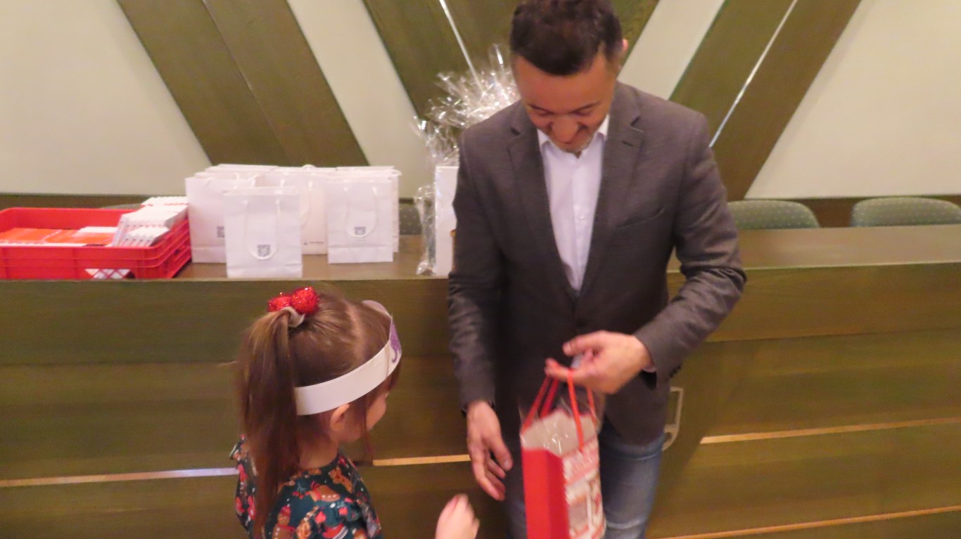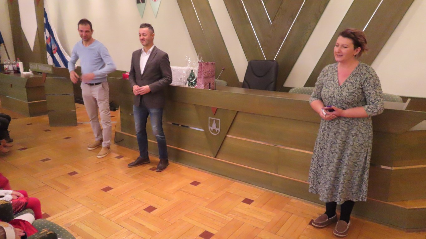 Nakon druženja i razmjene darova zajednički su pozirali pred božićnim drvcem koje krasi predvorje Gradske uprave.