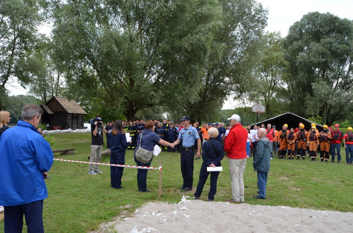 Vježbu su promatrali Marko Đukić, predsjednik Crvenog križa Osječko-baranjske županije, predsjednik Vatrogasne zajednice OBŽ Nikica Mužević, zapovjednik Vatrogasne zajednice OBŽ Boris Banjan , zapovjednica Zapovjedništva civilne zaštite OBŽ Ružica Slišković Bartoloti, voditelj Vodnogospodarstvenog odjela Hrvatskih voda Osijek Sergej Cvetković, pročelnik Područnog ureda Državnog ureda zaštite i spašavanja Osijek Cvjetko Obradović , voditelj Županijskog centra 112 Zvonko Grgec, načelnik Policijske uprave osječko-baranjske Milan Baričević, vijećnici Gradskog vijeća, predsjednici Mjesnih odbora, predstavnici medija i članovi ribičkog društva, koji su bili neizostavni dio logistike cijele vježbe.