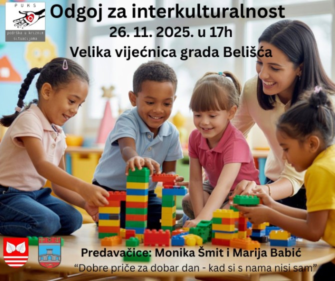 U srijedu, 26. 11. 2025. godine s početkom u 17h u Velikoj vijećnici grada Belišća, održat će se predavanje „Odgoj za interkulturalizam“.