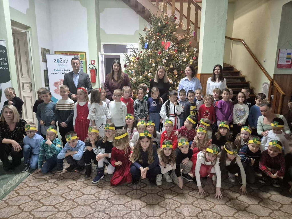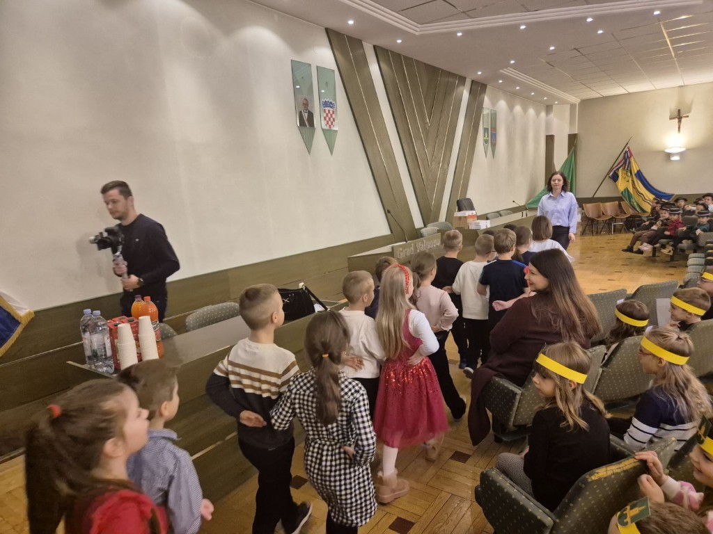 Najmlađi sugrađani, polaznici dječjih vrtića Maza i Moj Bambi u pratnji ravnateljica vrtića i svojih odgajateljica ispunili su veliku vijećnicu razdraganim pjesmicama, recitacijama, smijehom i veseljem.