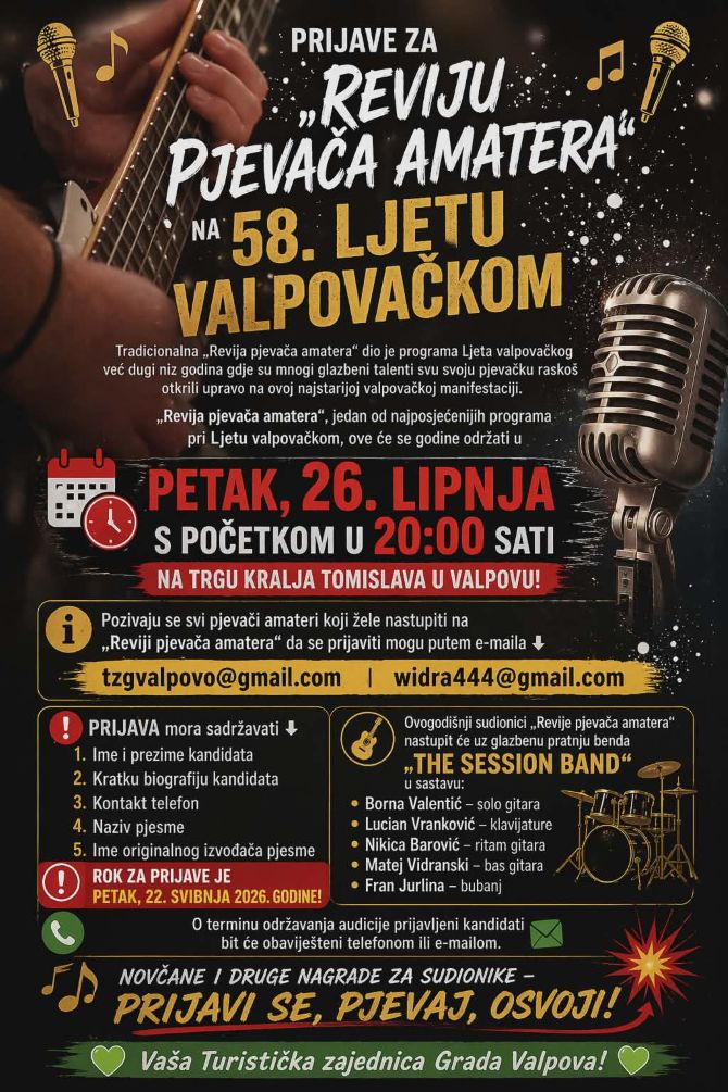 Prijave za „Reviju pjevača amatera“ na 58. Ljetu valpovačkom