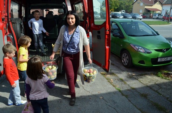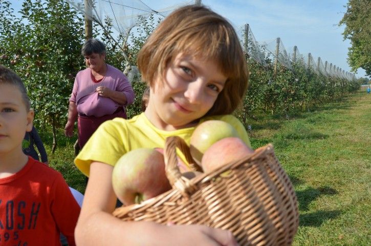 Vlasnici Obiteljskog gospodarstva Paulić, Blažica i Joza, ugostili su ih u svom voćnjaku nadomak Valpova i omogućili da „uživo“ dožive uzbudljivu priču o jabukama.