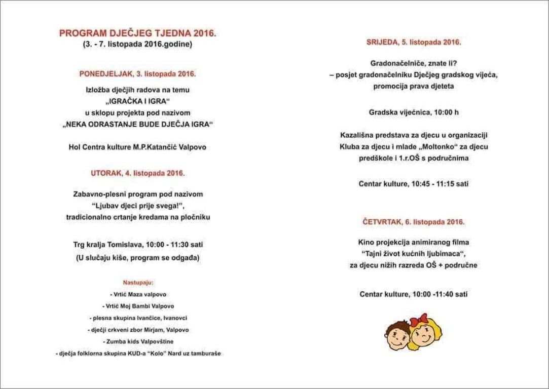 VALPOVO Društvo Naša djeca iz Valpova organizira program obilježavanja Dječjeg tjedna.