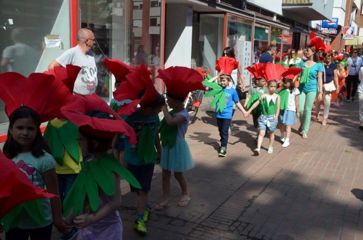 Uz predstavljanje svih šarenih skupina, u programu koji je uslijedio, a u kojem je bilo puno pjesme i plesa, posebni gosti su bili najmlađi članovi Kulturno – umjetničkog društva Ante Evetović Miroljub Veliškovci, Gat, Tiborjanci sa svojim voditeljicama Ankicom Jurlinom i Mirjanom Majdenić i novoosnovani zbor DV Maslačak, kojeg vodi Ivana Belcar, a koji je na nedavno održanom 4. Belišćanskom dječjem festivalu Vedrofon osvojio nagradu za najbolji prvi nastup. Također, u prigodnom programu, kojeg je vodila Dora Ledinšćak, nastupili su i polaznici DV Moj Bambi iz Valpova s odgojiteljicama Vedranom i Stelom. U programu su sudjelovala i djeca polaznici skupine Sovice s odgojiteljicama Sandrom Glasovac , Brankom Vidaković i Nikolinom Vuksanić te skupina Kikići s odgojiteljicom Dragicom Jančikić. Uz pjesmu i ples predstavili su se i 1.c i 1.d razred s učiteljicama Dajnom Đermešter i Anitom Korov te 2.d s učiteljicom Karmen Soldo. U cvjetnoj povorci sudjelovali su: skupina Jabučice (odgojiteljice Mirjana Trampus i Danijela Rajković Špoljarić), skupina Pčelice (odgojiteljice Dajana Frljužec i Valentina Mandić), skupina Vjeverice (odgojiteljice Slavica Vuksanić i Sara Vujević) te skupina Zvjezdice (odgojiteljice Gordana Jelkić i Miroslava Šargač). Iz osnovne škole u povorci su sudjelovali 3.c. (učiteljica Renata Berečić), 3.d učiteljica (Mirjana Glavaš), 2.c (učiteljica Monika Popović Dorkić) te 2.b (učiteljica Tajana Frajlić). Posebnost ovogodišnje cvjetne povorke u sklopu Cvjetnog korza je bila ta što su je predvodili mali folkloraši iz Veliškovaca, Gata i Tiborjanaca, koji su cijelo vrijeme pjevali i pokazali da se ne treba brinuti za očuvanje baštine njihovog kraja.