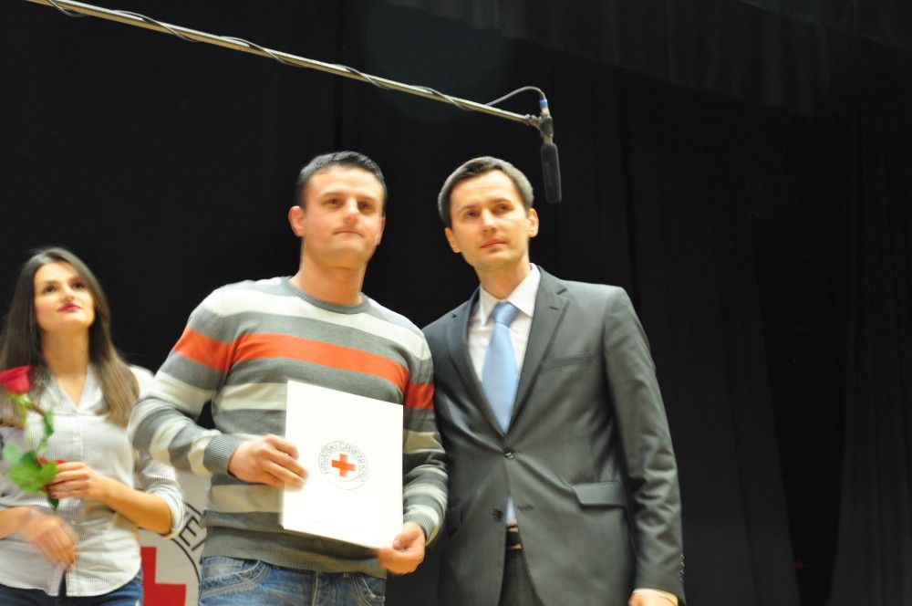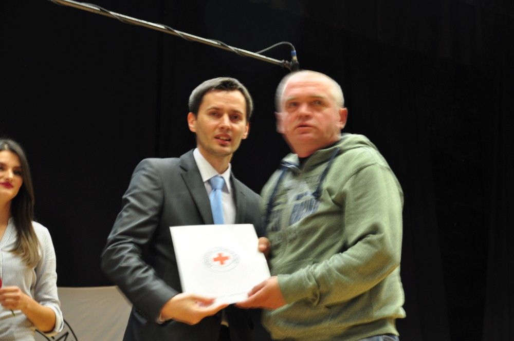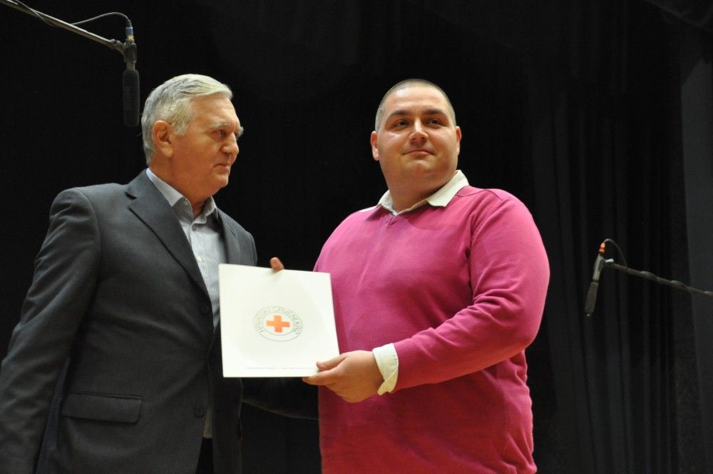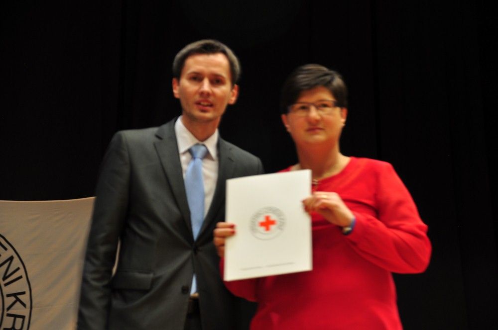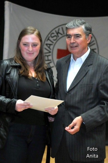 Zahvalnicu i zlatni znak priznanja Hrvatskog Crvenog križa i zahvalnicu za izvanredan uspjeh uručio je: Marko Đukić, ravnatelj Društva Crvenog križa Osječko baranjske županije