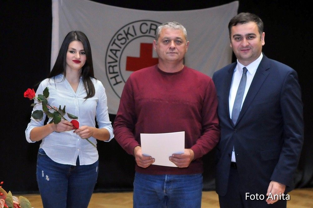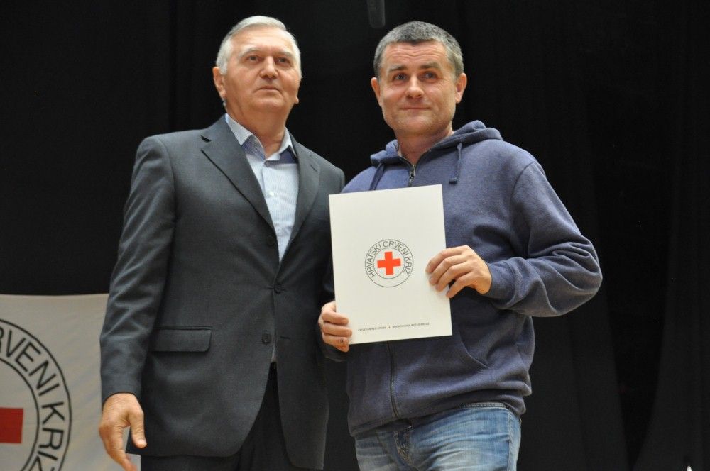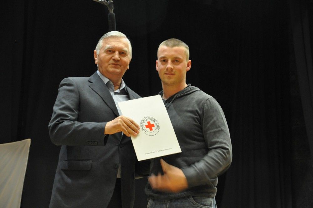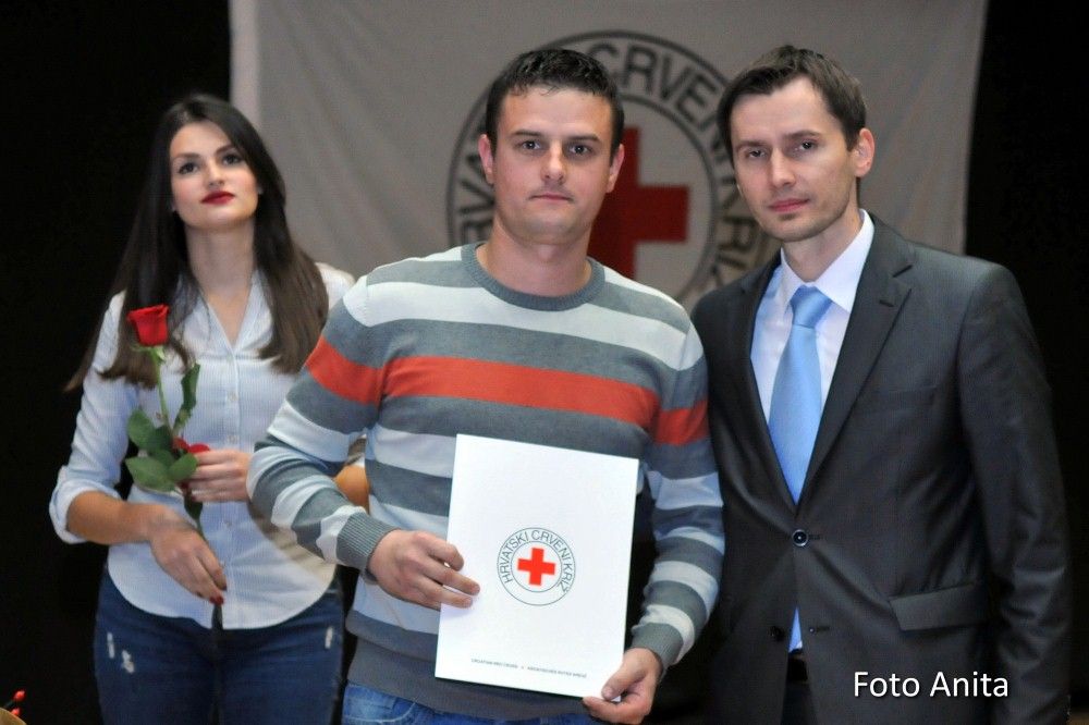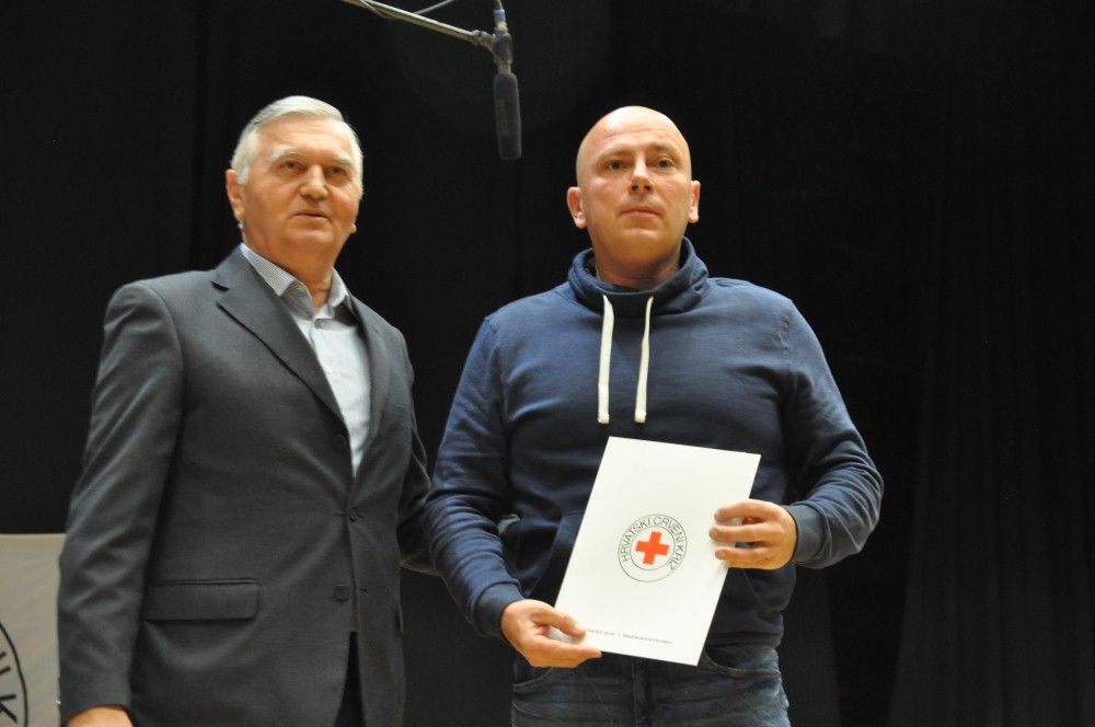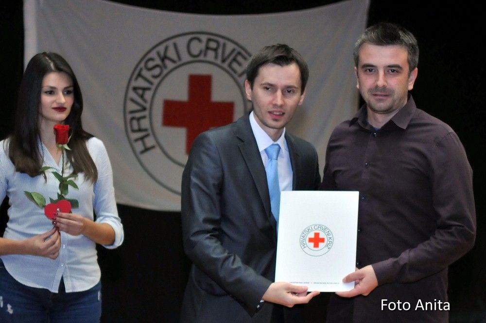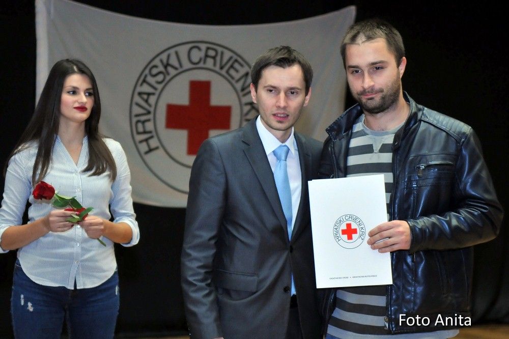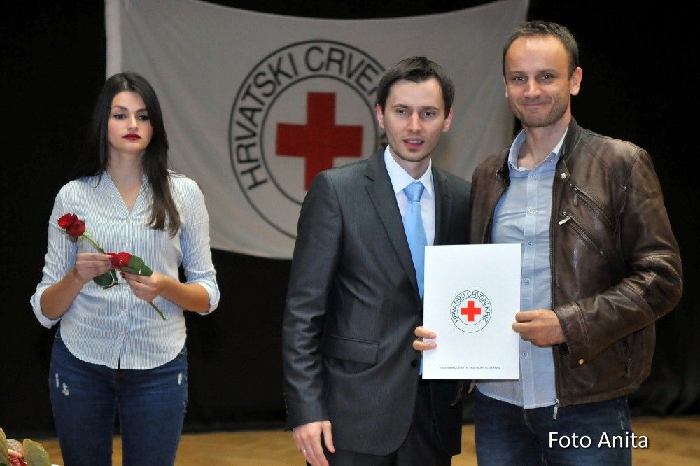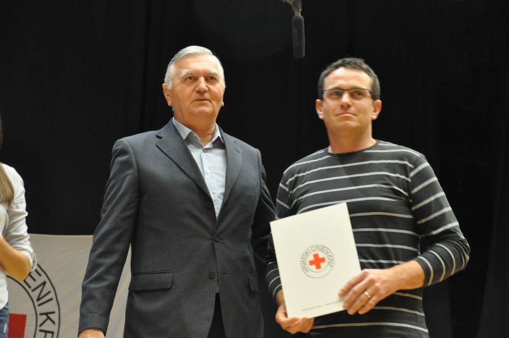 Zahvalnice i brončani znak priznanja Hrvatskog Crvenog križa uručio je: Denis Ćosić, ravnatelj GDCK Osijek i član Glavnog odbora Hrvatskog Crvenog križa