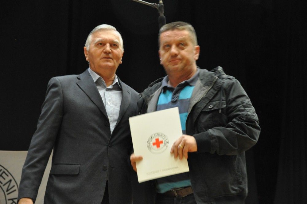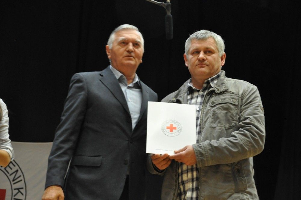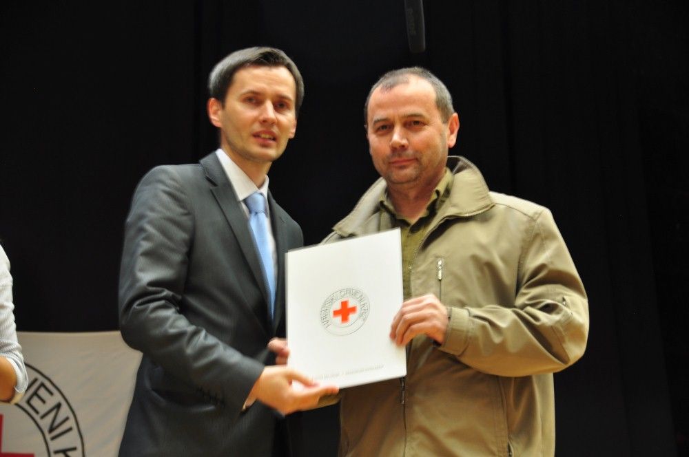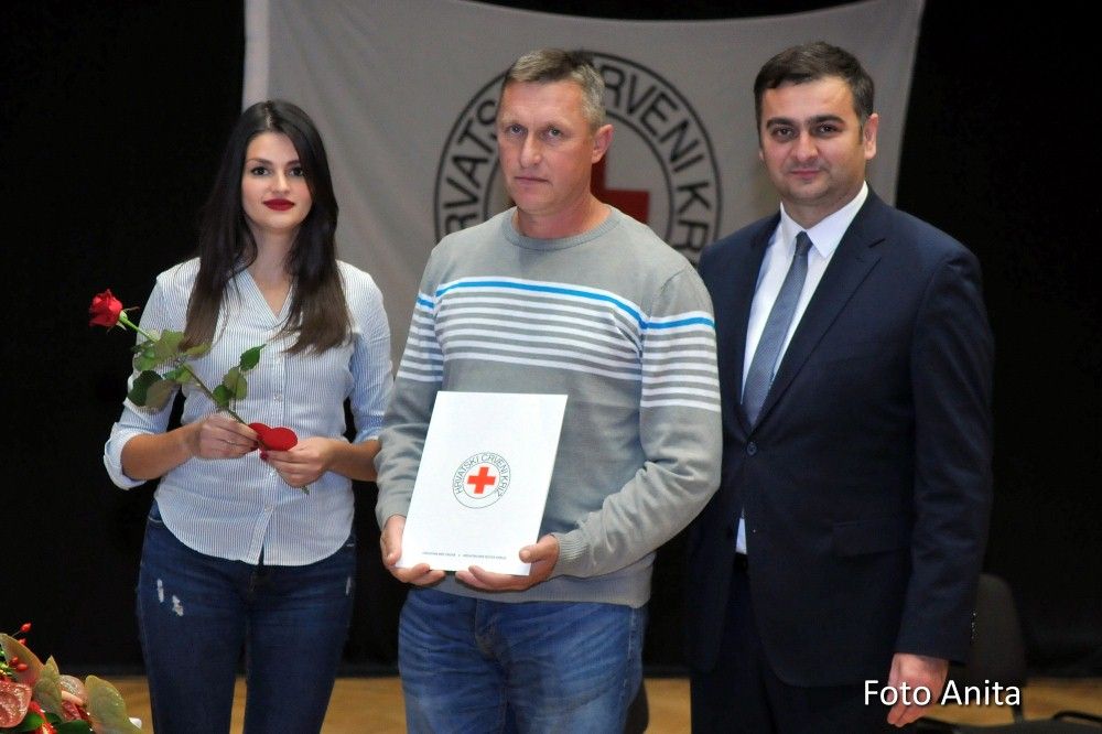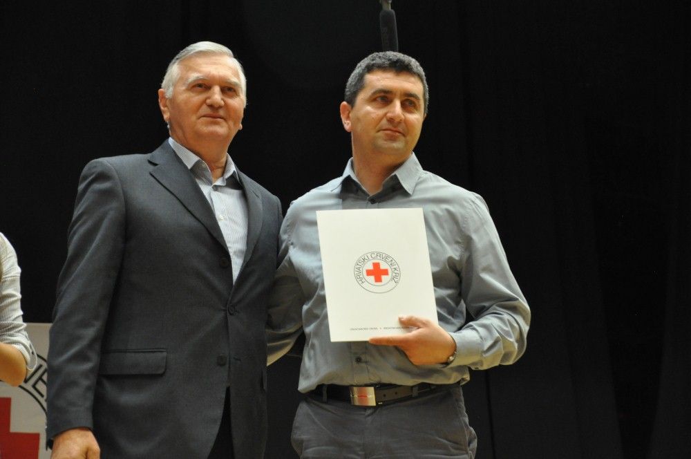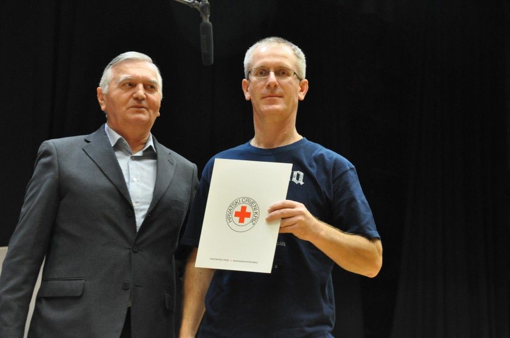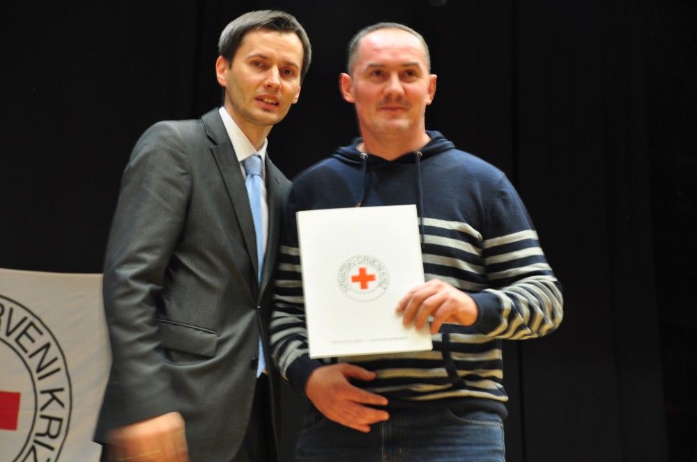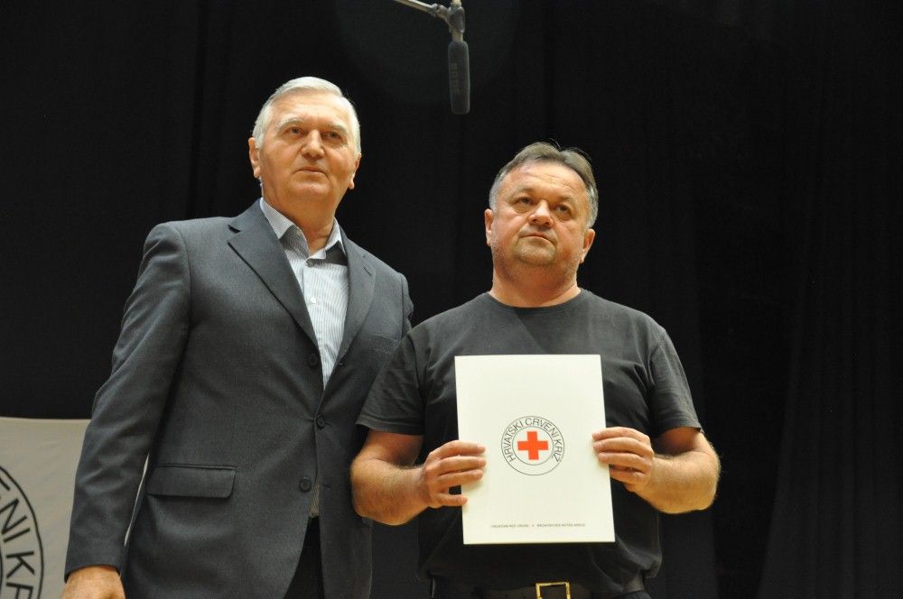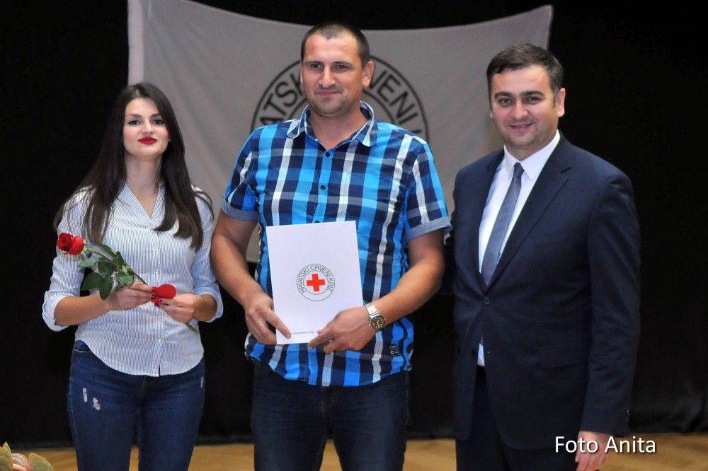 Zahvalnice i brončani znak priznanja Hrvatskog Crvenog križa uručio je: Denis Ćosić, ravnatelj GDCK Osijek i član Glavnog odbora Hrvatskog Crvenog križa