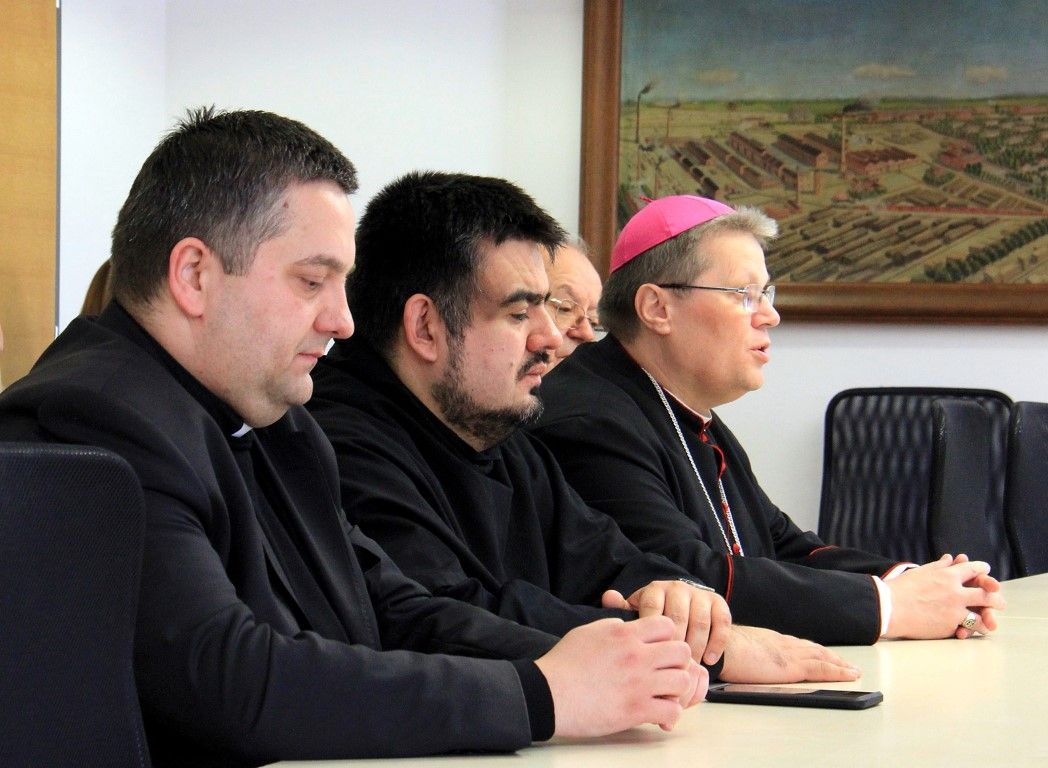Uz nadbiskupa Hranića današnjem prijamu u Gradskoj upravi prisustvovali su i konvizitator msgr. Luka Marjanović te vlč. Dario Hrga, tajnik nadbiskupskog kanonata.
