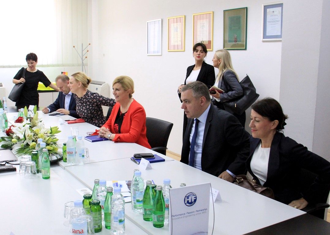 Predsjednica Grabar Kitarović je kratkim prezentacijama upoznata s tvrtkama, a potom je obišla i proizvodne pogone Harburg Freudenbergera i DS Smitha. Tako je Ana Soldo istaknula kako je tvrtka DS Smith vodeći proizvođač papira i ambalaže u Hrvatskoj. Tvrtka trenutno zapošljava 420 radnika, a po potrebi, sezonski, još dvadesetak, te je u 2017. osvojila priznanja Zlatna kuna i Zlatni ključ za izvoz u Mađarsku. Zoran Uranjek je o HF-u, tvrtki koja se bavi proizvodnjom strojeva za proizvodnju automobilskih guma istaknuo kako je Harburg Freudenberger po proizvodnji jednog od tih strojeva, konkretno preše za vulkanizaciju automobilskih guma, vodeća u svijetu. HF Belišće zapošljava 680 radnika, no tu je i mreža kooperanata koji zapošljavaju još oko 800 radnika.