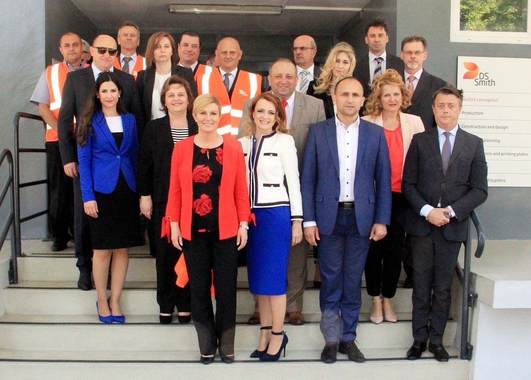 BELIŠĆE Danas je predsjednica Republike Hrvatske Kolinda Grabar Kitarović posjetila Belišće, točnije tvrtke Harburg Freudenberger i DS Smith Belišće.