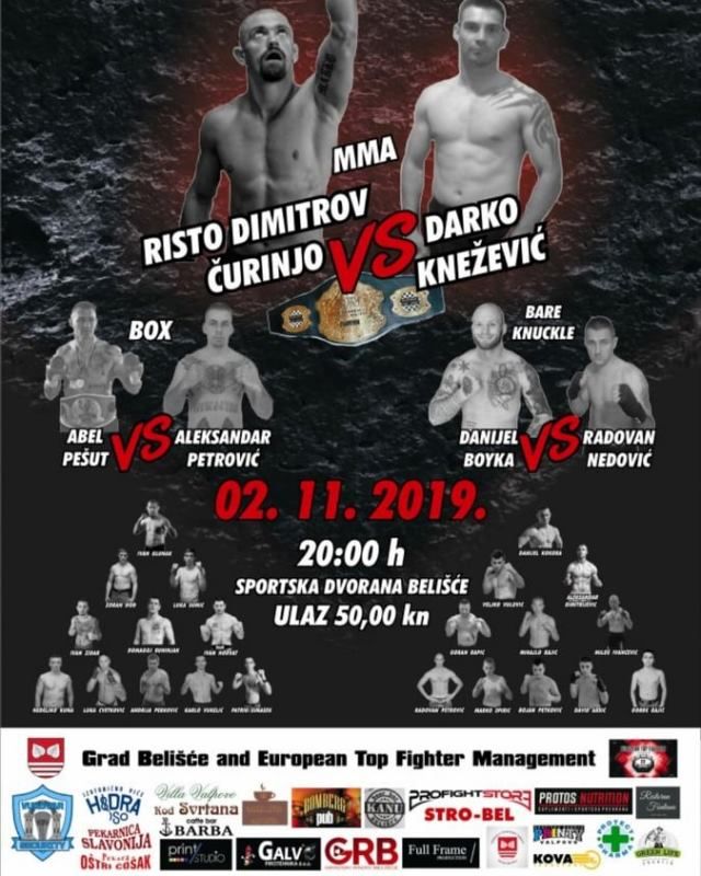 Te subote uvečer očekuju ih zanimljivi mečevi u organizaciji grada Belišća i European Top Fighter Menagementa, a borba večeri vodit će se između Riste Dimitrova Čurinje i Darka Kneževića.
