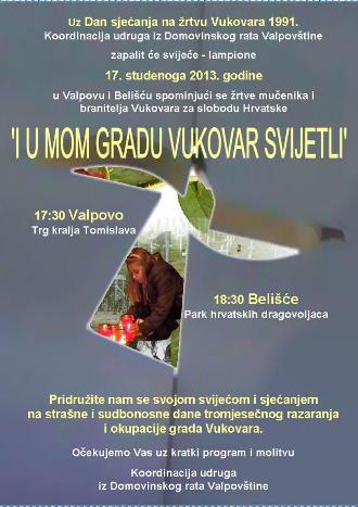 BIZOVAC Udruga mladih Središte i Općina Bizovac pozivaju sve ljude dobre volje i velikog srca da im se pridruže u nedjelju, 17. studenoga, i zapale svijeću za Vukovar.
