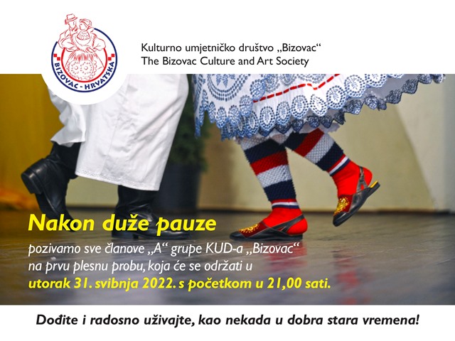 BIZOVAC Kulturno umjetničko društvo Bizovac, nakon duže stanke otvara sezonu plesnih proba.