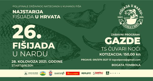 VALPOVO/NARD U subotu, 28. kolovoza 2021. godine, TZ Grada Valpova u suradnji s Gradom Valpovom, Turističkom zajednicom Baranje i NK „Drava“ Nard, organizira 26. po redu Fišijadu u Nardu.