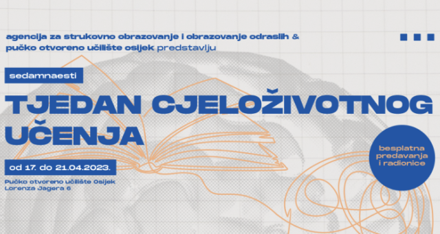 Tjedan cjeloživotnog učenja održat će se od 17. do 21. travnja 2023. godine u prostorijama Pučkog otvorenog učilišta Osijek na adresi Lorenza Jagera 6 u Osijeku.