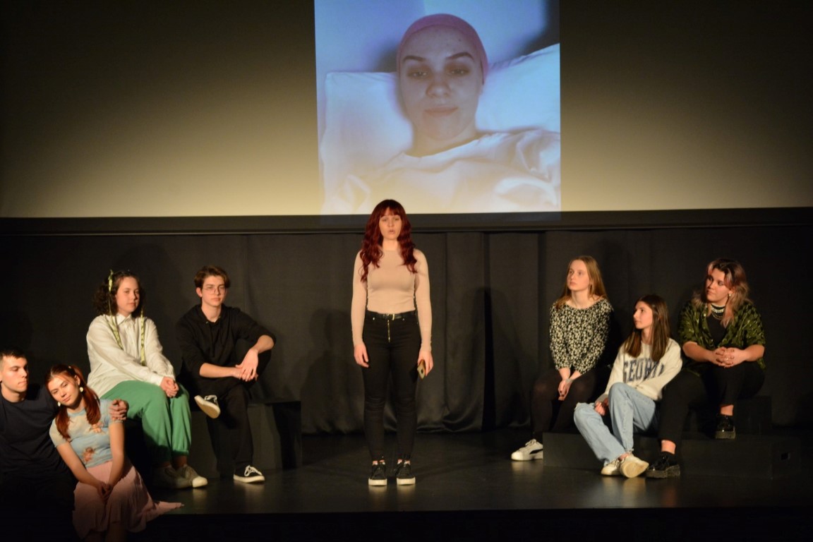 Podsjetimo, predstava prati osam adolescenata koji se suočavaju s problemima koji su česti među mladima. Likovi traže izlaz iz različitih situacija (rastava roditelja, opterećenost vlastitim izgledom i kilogramima, uspjeh u školi, nasilje, bolest, loše mišljenje o sebi i slično). Grupa dokumentira svoje probleme klik po klik – selfie projekcijama koje upotpunjuju samu radnju. Kroz predstavu pratimo kako likovi uče puno toga o sebi i o životu, kako se mijenjaju te na kraju shvaćaju da bit nije u onome što drugi ljudi vide u nama nego je bitno pronaći i prihvatiti sebe onakvima kakvi jesmo. Predstava “Selfie” nastala je prema tekstu Bradleyja Haywarda.