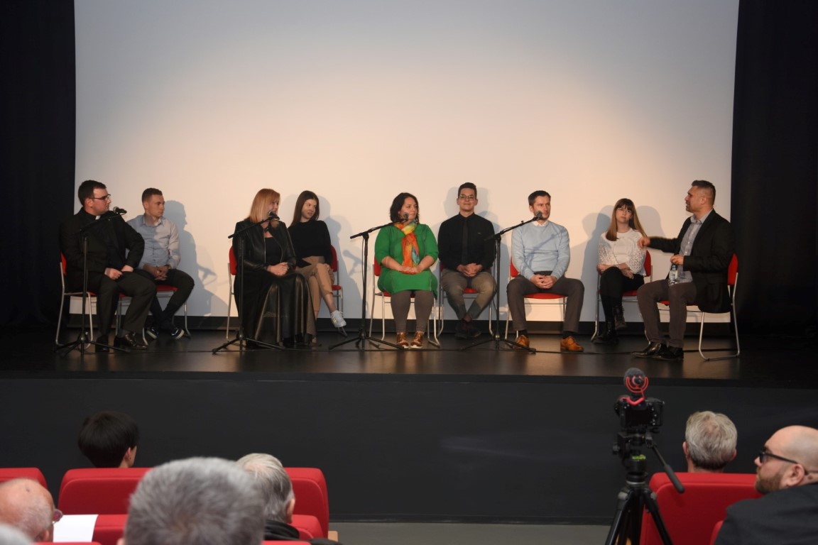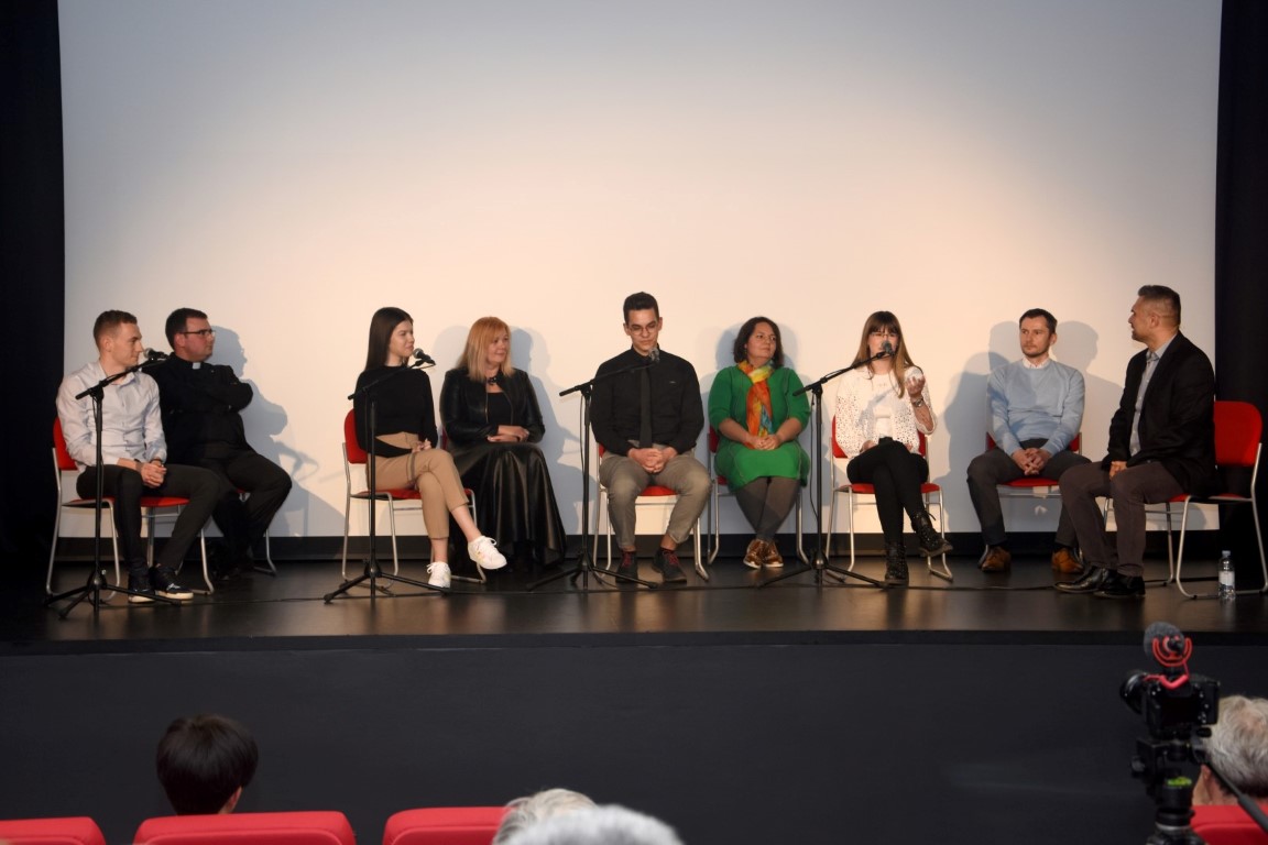 Ispred pozornice, redatelju se se pridružili i glavni protagonisti filma Davor Batrac Keks, Ivan Beck, Mladen Matičić i Stipo Mlinarić Ćipe, a publika ih je podržala gromoglasnim pljeskom. Zatim je uslijedio dio u kojem je sudjelovala i publika. Redatelj je na pozornicu pozvao Vlastu Putar, Vanesu Šerić, Domagoja Varžića i fra Mirka Miškovića koji su imali priliku govoriti o svojim dojmovoma o filmu. Na pozornici su im se pridružili i četvero mladih iz Vukovara. Ena Kolak, Klara Vukovac, Mato Ivković i Šimun Škarica također su govorili o svome viđenju filma.