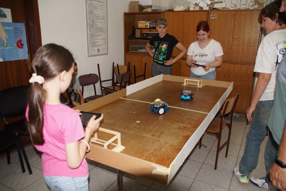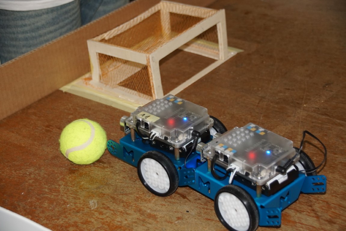 Igranje nogobota sa robotskim kolicima (mBot). Riječ je o programiranju robotskih kolica za obavljanje određenih radnji, tj igranje nogometa pomoću tableta. Nogomet mogu igrati nekoliko igrača u timu protiv drugog tima. Igrao se nogometni turnir.