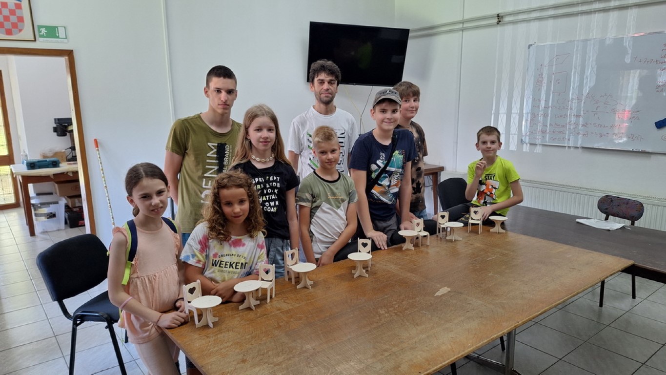 Na radionici su korišteni Unimat strojevi za piljenje šperploče. Polaznici su izrađivali model stola i stolice. Drugi dio zadatka bilo je sastavljanje i ljepljenje modela. Završene tehničke tvorevine su polaznici nosili kući.