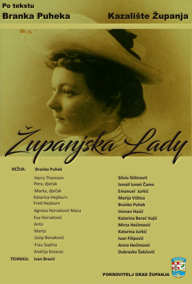 Nakon nekoliko desetljeća priča, nagađanja, nepoznanica o životu jedne divne žene, napokon je zaživjela kazališna predstava o njoj, najpoznatijoj Županjki, Katarini Hepburn, Županjskoj Lady. Istinita priča nastala po zapisima, kazivanjima, dokumentima, fotografijama izvučenim iz prašnjavih ormara, ladica, govori nam o njenoj ljubavi, patnji, stradanju, o velikom županjskom srcu, plemenitosti. Predstavu je napisao Branko Puhek, a u predstavi igraju Silvio Stilinović, Ismail Ismet Čamo, Emanuel Jurkić, Marija Vištica, Branko Puhek, Imman Hasić, Katarina Berać Vujić, Mirza Hećimović, Katarina Jurkić, Ivan Filipović, Amra Hećimović i Dubravko Šokčević.
