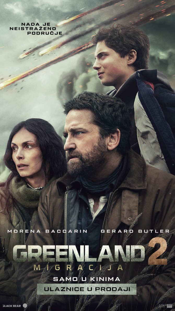 Sadržaj: U nastavku provokativnog i napetog hita “Greenland” iz 2020. godine, film “Greenland 2: Migracija” vodi nas na put pun neizvjesnosti – put kojim se mora pokrenuti cijela obitelj Garrity koju i ovog puta predvodi Gerard Butler! Radnja filma smještena je pet godina nakon što je komet Clarke pogodio Zemlju i uništio velik dio planeta. Obitelj Garrity, koja je preživjela skrivanjem u bunkeru na Grenlandu, suočava se s novim izazovima. Njihov sin Nathan sada je tinejdžer i teško podnosi život u skučenim uvjetima podzemlja. Zbog toga obitelj odlučuje napustiti prividnu sigurnost bunkera i krenuti u potragu za novim domom u razorenoj i opasnoj Europi.