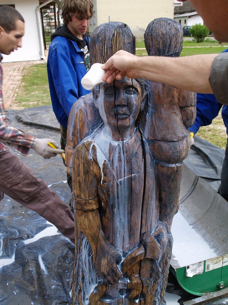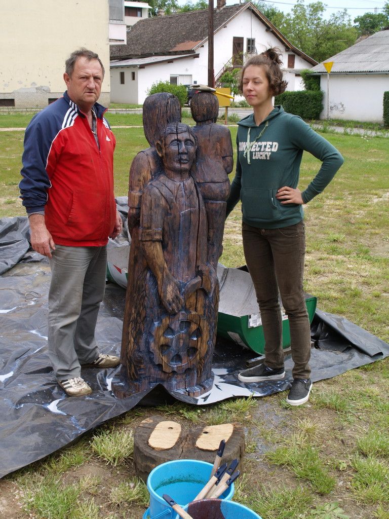 Marljivi članovi Udruge za kulturu i umjetnost “ZUM” uz vanjskog suradnika Zdenka Krulića, uz poteškoće izazvane varljivim vremenom, organizirali su ovu aktivnost u sklopu programa obilježavanja Dana grada Belišća kako bi skulpturama vratili stari sjaj. Pored idejnog začetnika ovog projekta Zdenka Krulića, u obnovi skulptura sudjelovali su Dubravko Maričić, Vlado Jung, Toni Jung, Goran Kovač, Tomisalv Kuna, Ana Kos, Matija Stanić, Dorian Hamm, Luka Jurkić, Vedran Jelić, Matko Marković i Ivan Perković.