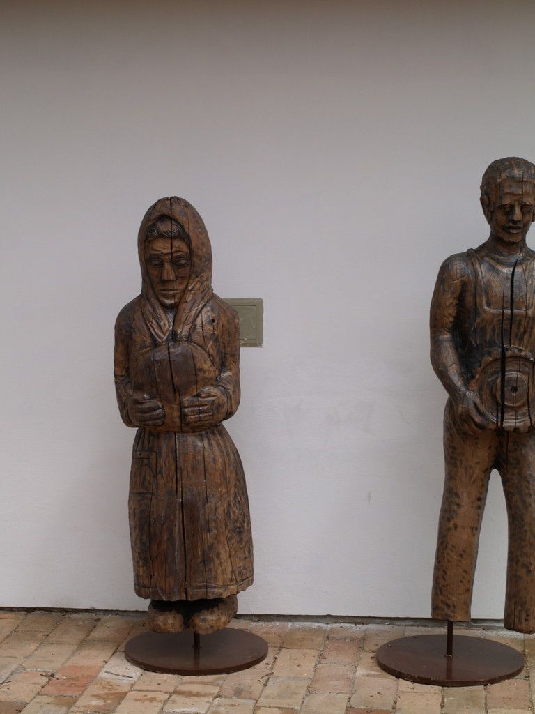 Navedene drvene skulpture nastale su početkom osamdesetih godina na kiparskim kolonijama pod nazivom “Tvornički radnik” i nalazile su se u zgradi uprave Kombinata Belišće. Skulpture simboliziraju radnike Kombinata „Belišće“, odnosno njihove djelatnosti u Kombinatu, a bit će dio stalnog postava budućeg Muzejsko-galerijskog postava kao dio nasljeđa industrijskog razvoja Belišća i njegove kulturne baštine.