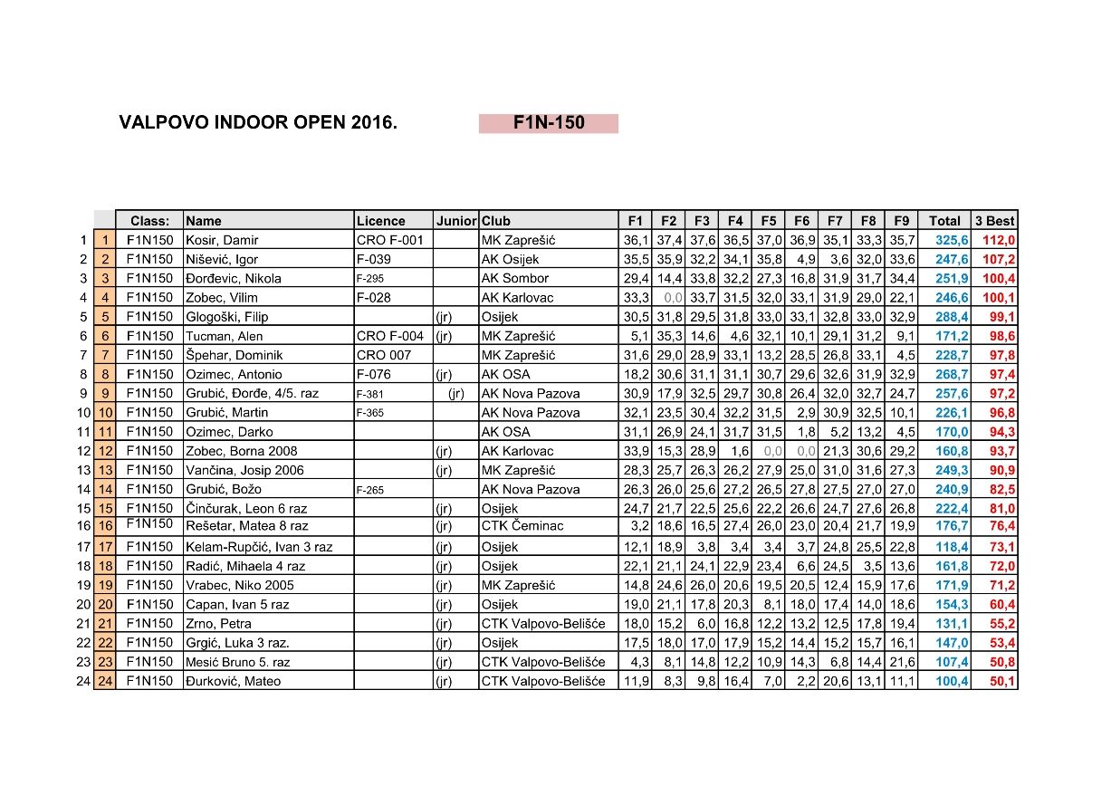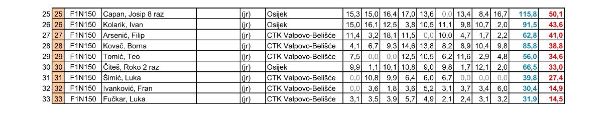 U kategoriji F1N-150 natjecalo se 33 natjecatelja, a u kategoriji F1N 19 natjecatelja.