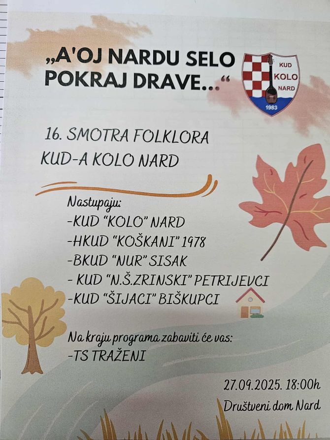 -Manifestacija se održava već punih 27 godina, a pored domaćina i naših folkloraša još su nastupili Bunjevci iz Tavankuta iz Srbije, te KUD iz Aljmaša, rekao nam je nakon gostovanja Mario Šaronić, predsjednik KUD-a Kolo Nard.