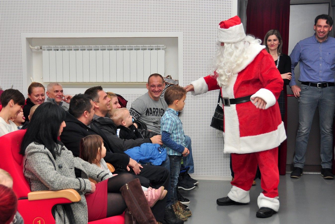 U dvorani Centra za kulturu program je bio upriličen za djecu djelatnika tvrtke Harburg-Freudenberger Belišće, a Djed Božićnjak, kojeg je utjelovio Ivica Koprivnjak, podijelio je djeci prigodne poklone. Za izvedbu božićnih pjesama bio je zadužen Zabavni orkestar Amaterskog kazališta Belišće u sastavu Zvonimir Iveković, Željko Čorba, Davor Novaković, Stjepan Jambrović Štef i Stjepan Pavoković uz solistice Valentinu Gyerek i Anu Šikić. Voditeljica programa Silvija Kifer blagdanskim tekstovima uveselila je brojnu djecu i roditelje u publici.