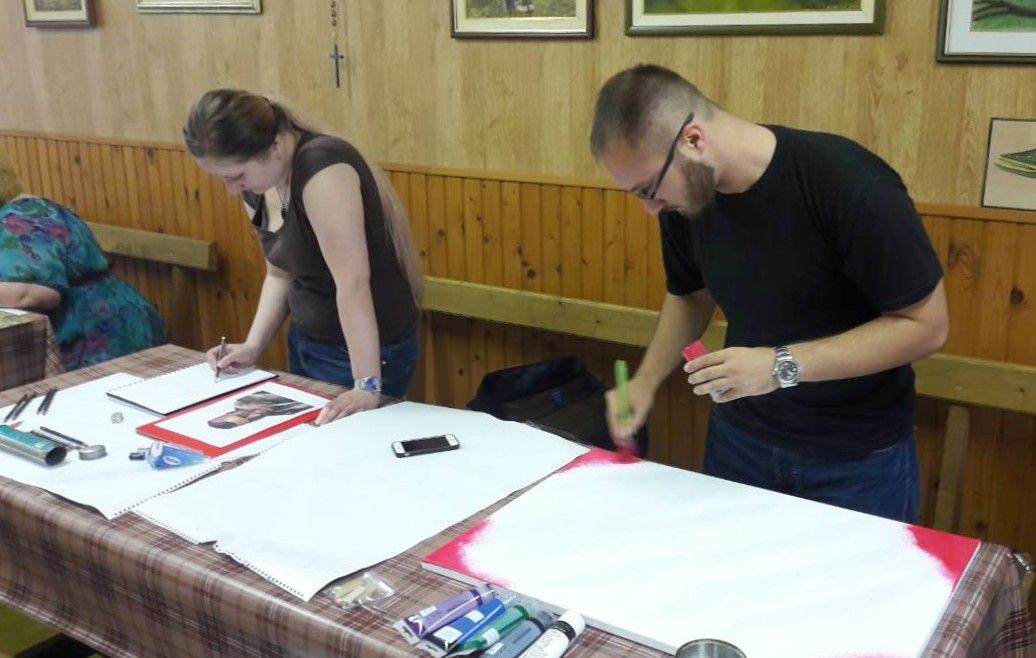 Nakon uvodnih riječi slikari, njih dvadesetak, uhvatilo se slikarskog materijala i prionuli na stvaranje novih umjetničkih djela. Motivi su bili raznoliki, pa se tu moglo vidjeti od portreta, cvijeća, pejzaža pa i poneka apstrakcija u različitim slikarskim tehnikama kao što su akril, akvarel, suhi pastel i olovka.