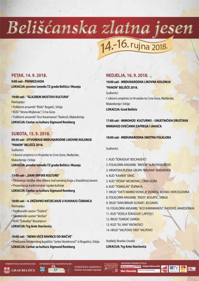 -Posjetite ''Belišćansku zlatnu jesen'' od 14. do 16. rujna i uživajte u bogatoj kulturnoj i gastro ponudi, pozivaju organizatori.