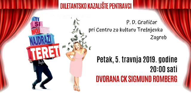 U petak, 5. travnja 2019. godine, s početkom u 20 sati, gosti iz Zagreba zaigrat će komediju “Ti si moj najdraži teret” autora Vjekoslava Dominija. U predstavi igraju Snježana Drkulec, Nikola Kuzmičić i Igor Mikulčić, a predstavu je režirao Branko Mikac.