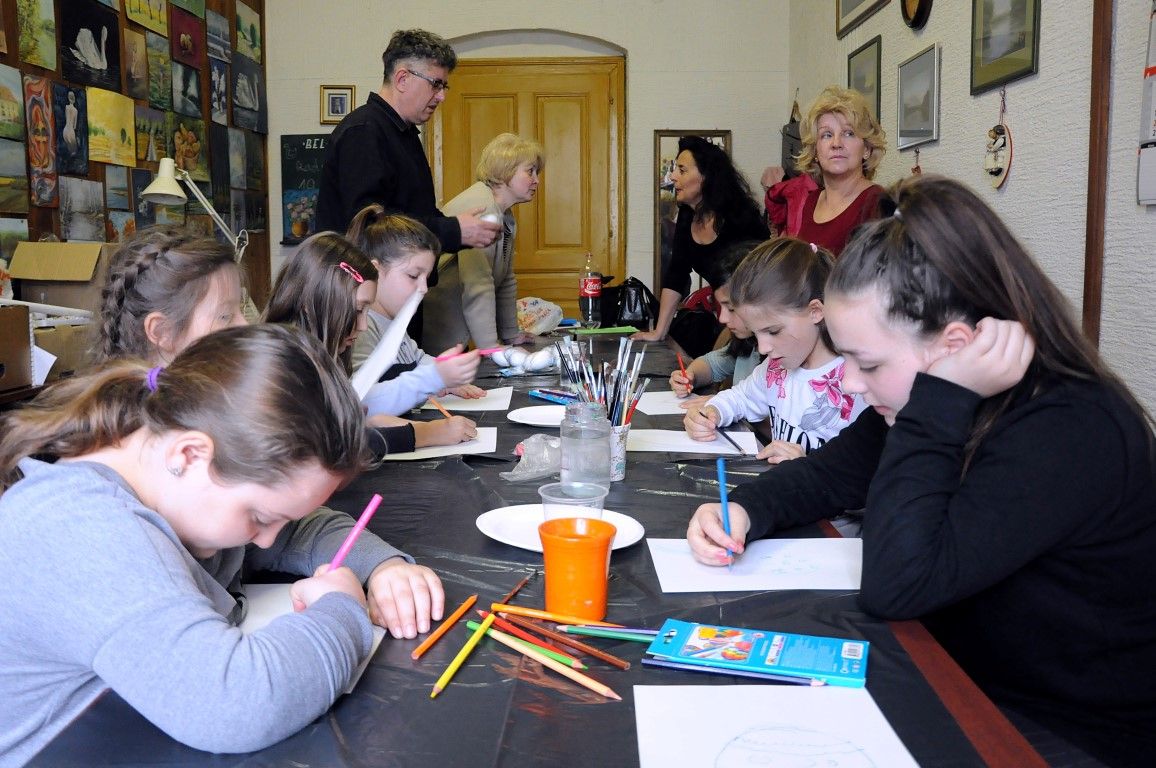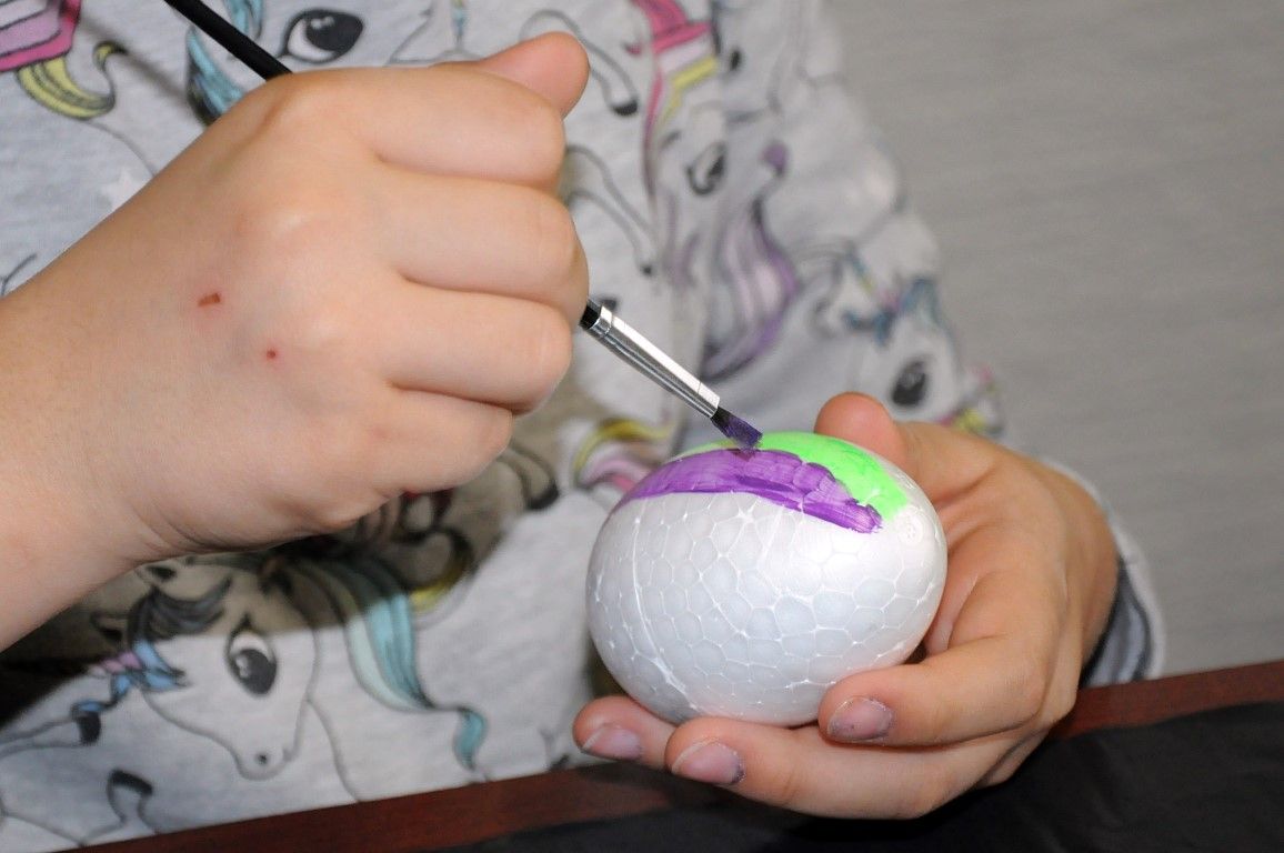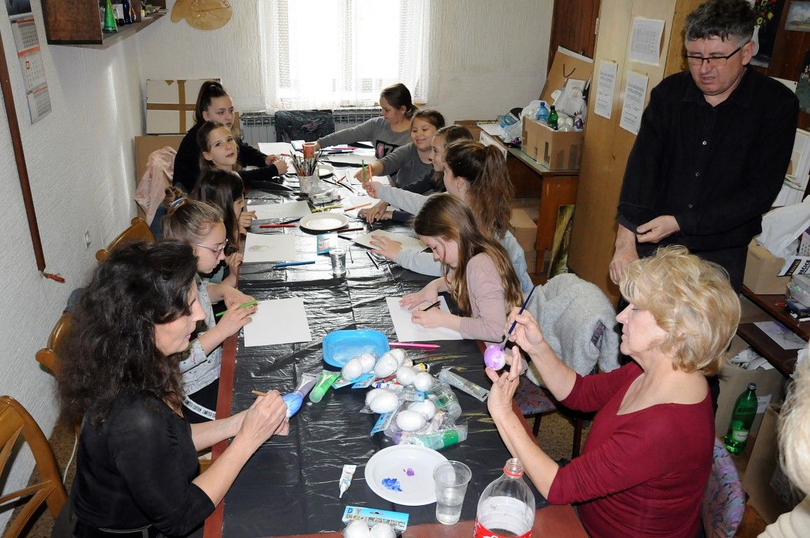 Prigodno tome, Bel-artovci, Jadranka Berak, Suzana Lešnjaković, Vesna Vajda, Ivan Vajda i Tin Lacković na subotnjoj radionici, u ugodnoj i opuštenoj atmosferi, mlade polaznice radionica podučili su kako pomoću akrilnih i konturnh boja ukrasiti jaje od stiropora crtanjem različitih motiva i simbola.