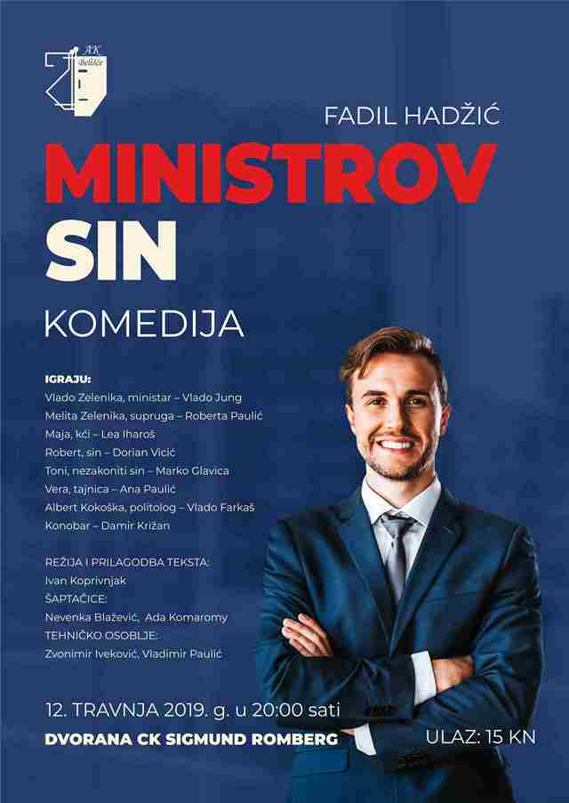 Riječ je o komediji Fadila Hadžića “Ministrov sin”, a režiju i prilagodbu teksta potpisuje Ivica Koprivnjak.