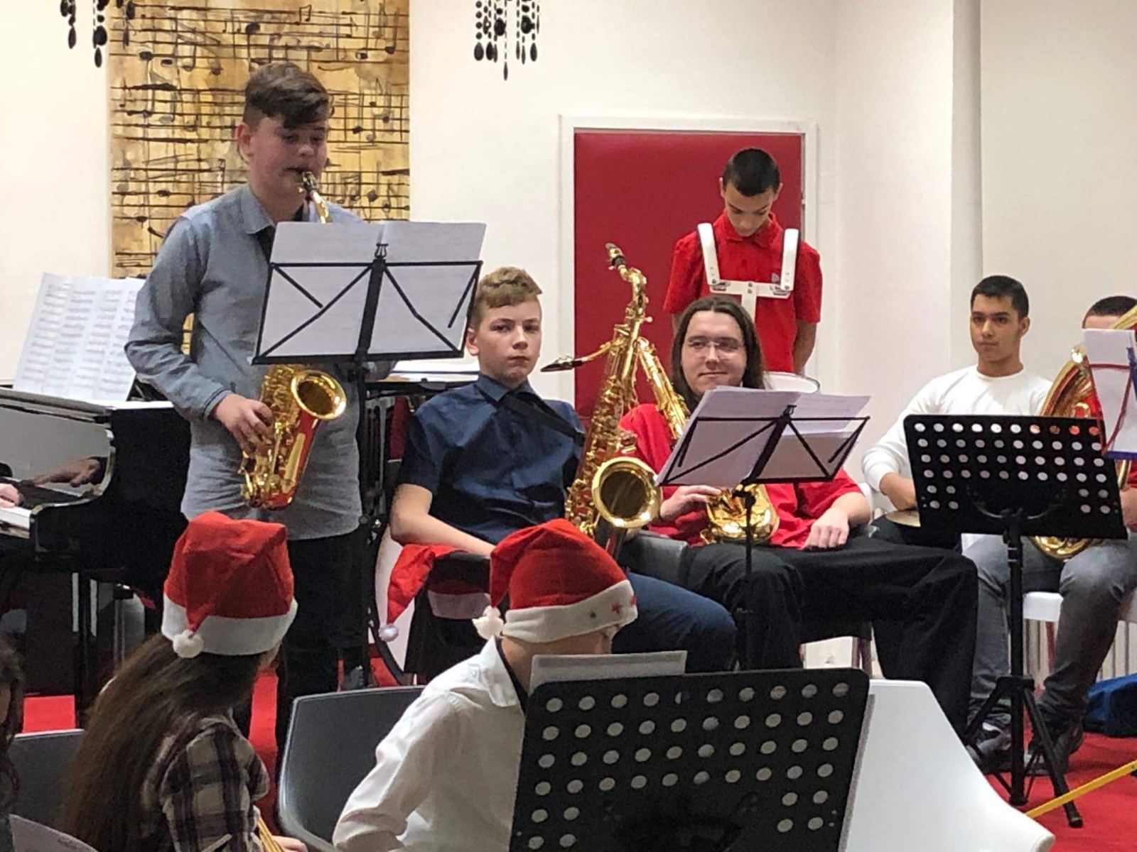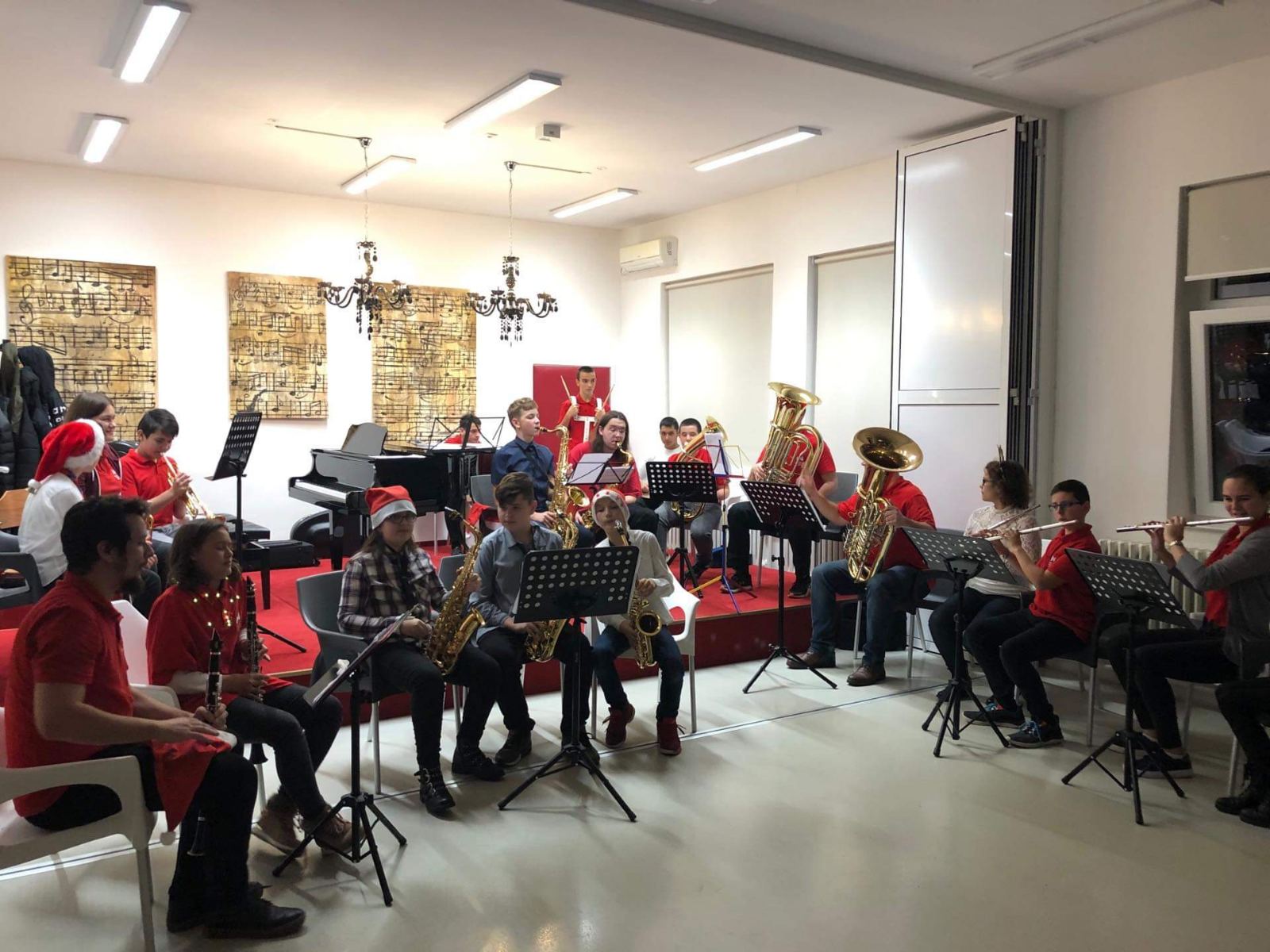 U dvorani Glazbene škole u Belišću, orkestar sastavljen najvećim dijelom od mladih glazbenika, učenika osnovnih i srednjih škola, predstavio se raznovrsnim programom koji je uključivao kako standardne božićne pjesme tako i zabavnu i filmsku glazbu. Publika je tako mogla čuti presjek repertoara od narodnih božićnih pjesama kao što su “Narodi nam se” preko popularnog songa Deana Martina “Let it snow” do tema iz filmova “Jurrasic park”, “Ghostbusters” i “Čarobnjak iz Oza”. Pored zajedničkog muziciranja, svoje umijeće na instrumentu pokazalo je i nekoliko mladih glazbenika u samostalnim točkama.
