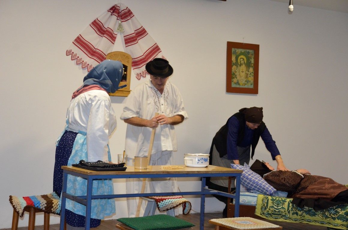 U bogat folklorni program publiku je uveo kratak skeč o predblagdanskim običajima na selu s darivanjem anđela te simboličnim šibanjem publike, obilježavajući bol ubijene dječice, nastavljajući tako običaje vezane uz spomendan Nevine dječice.